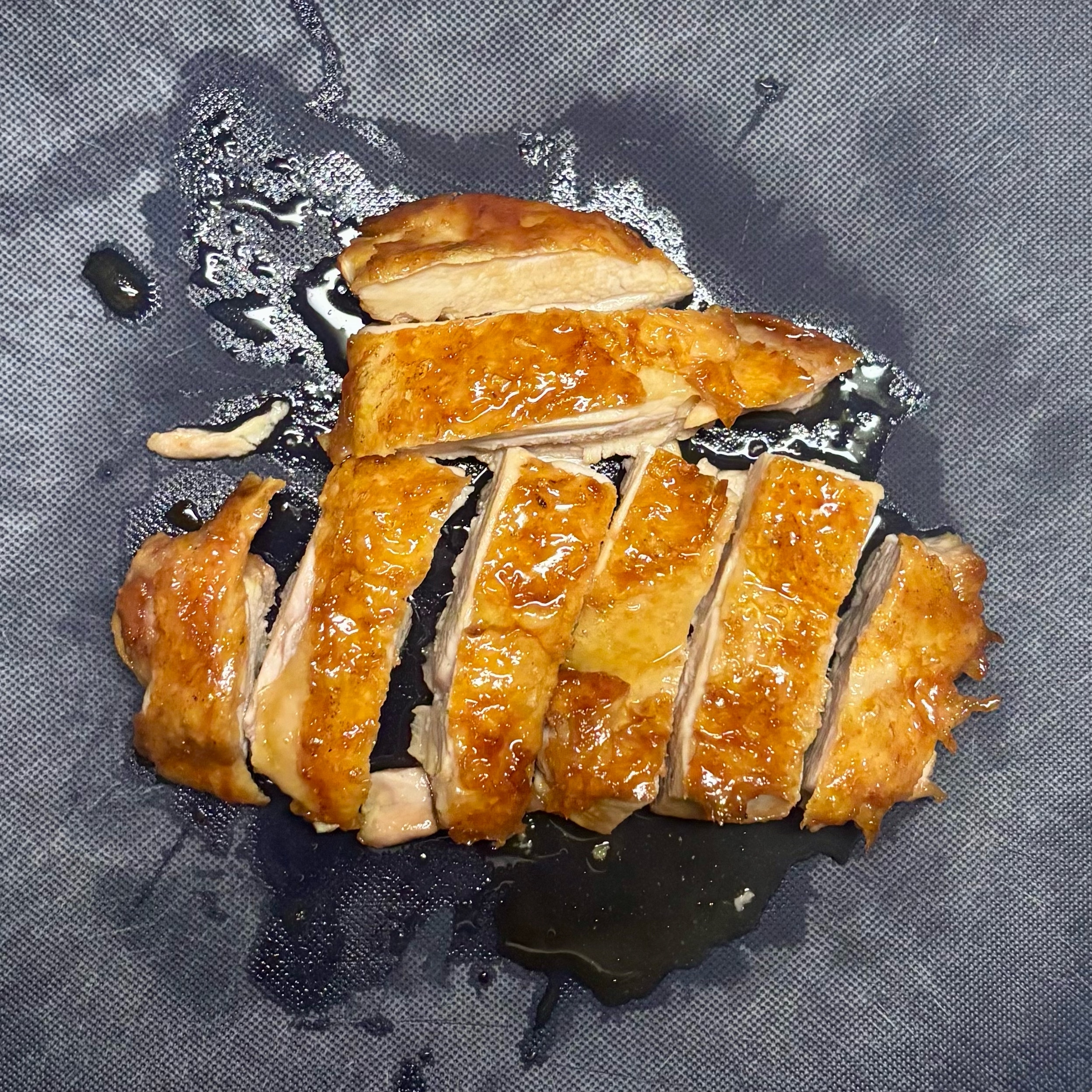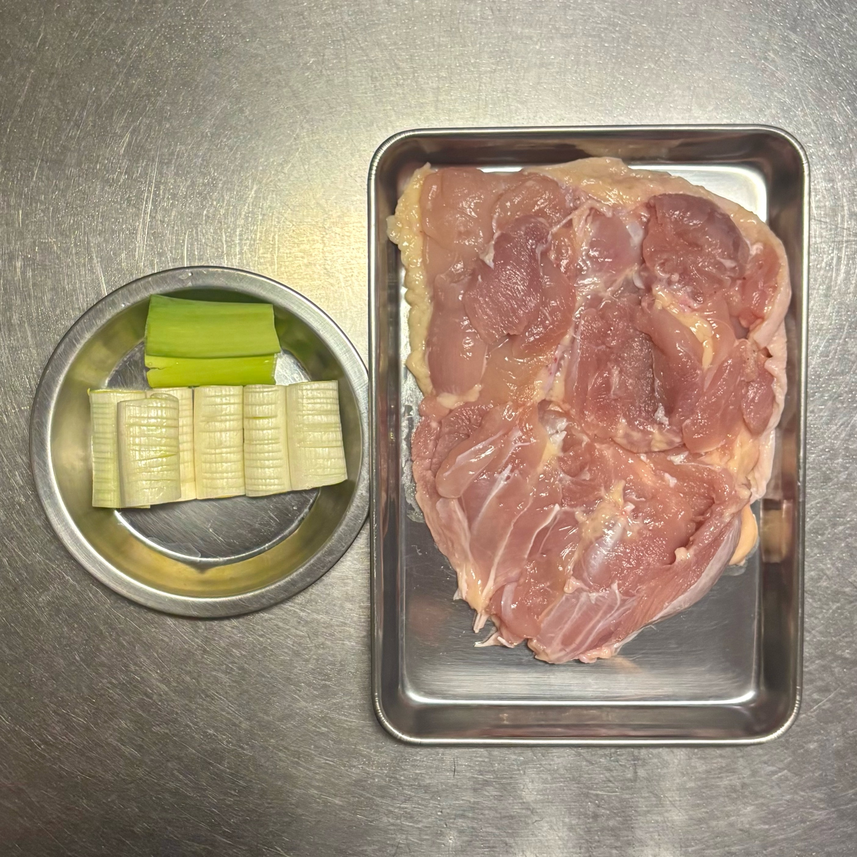 鶏肉と長ねぎを取り出し、鶏肉は5分ほど休ませてから1.5㎝幅に切る。