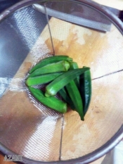 オクラを茹でる為に長芋を焼いてる間にお湯を温めてオクラを2分程度茹でる。