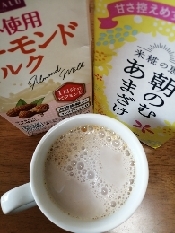 アーモンドミルク、朝のむあまざけを注ぎ電子レンジで2分くらい温めよく混ぜれ出来上がり!