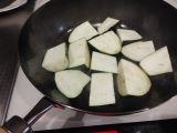 フライパンに胡麻油を敷き、茄子を強火で炒める