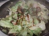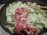 しんなりしたら、豚薄切り肉を加えて炒める