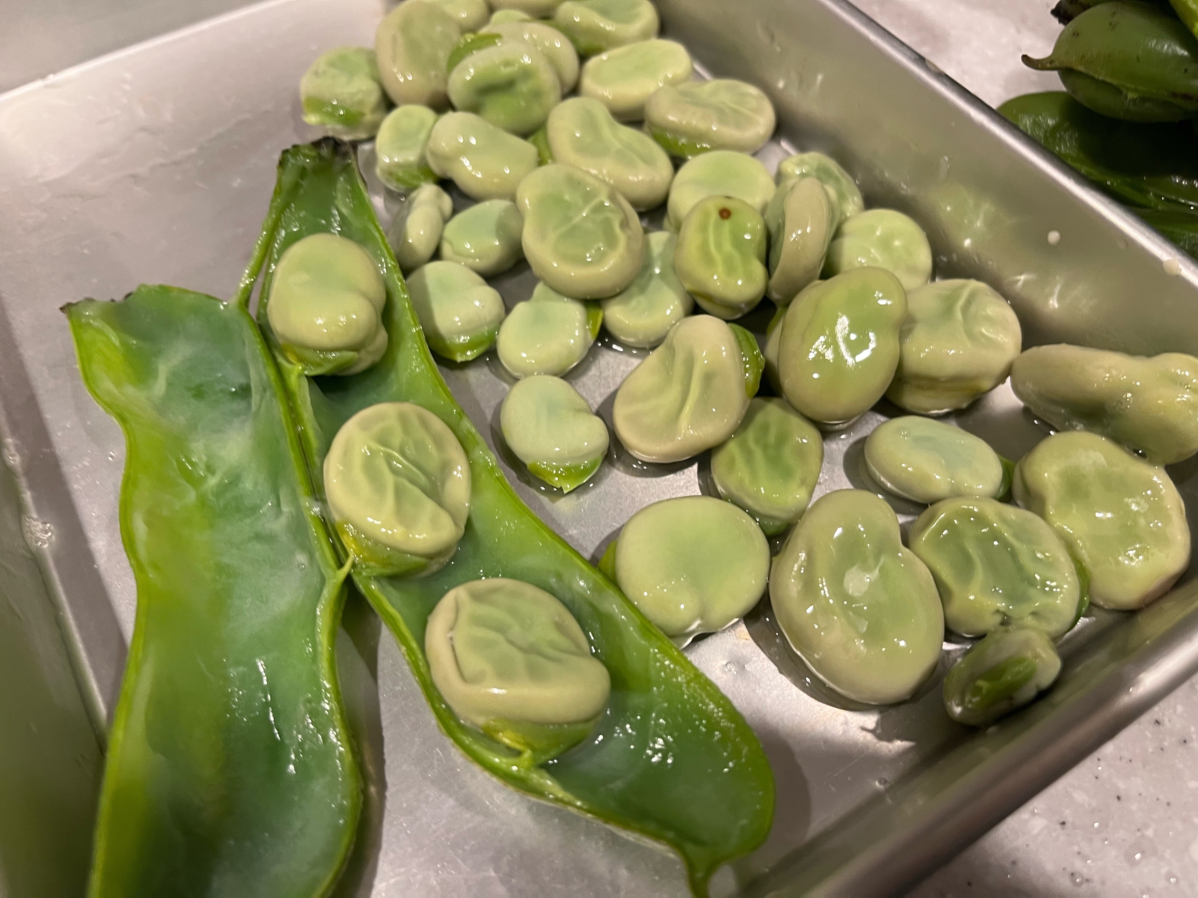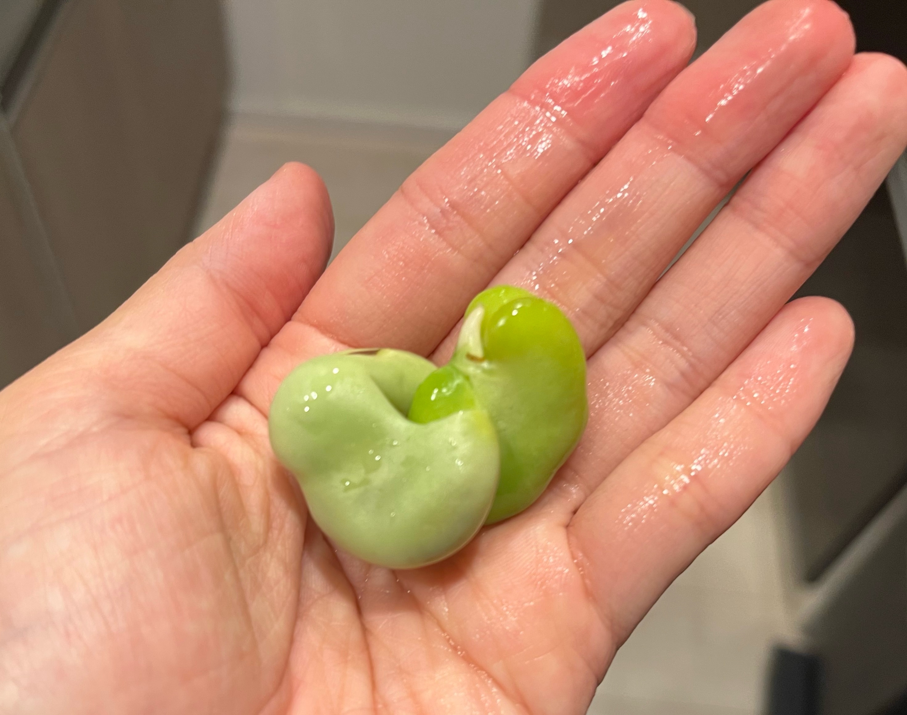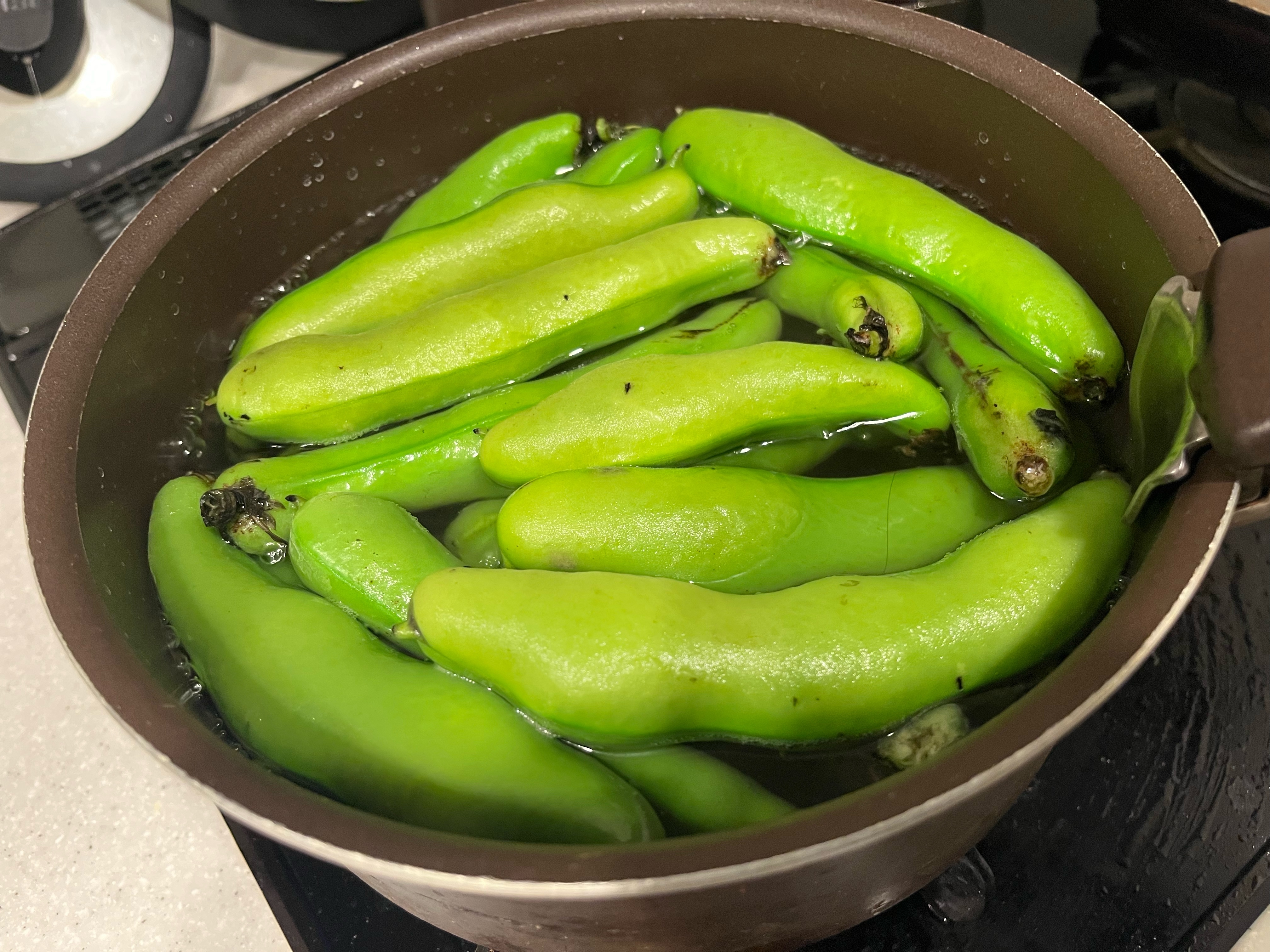 お湯1リットルに対し、塩を大さじ1入れて加熱し、沸騰したらそら豆をそのまま3分間茹でる。