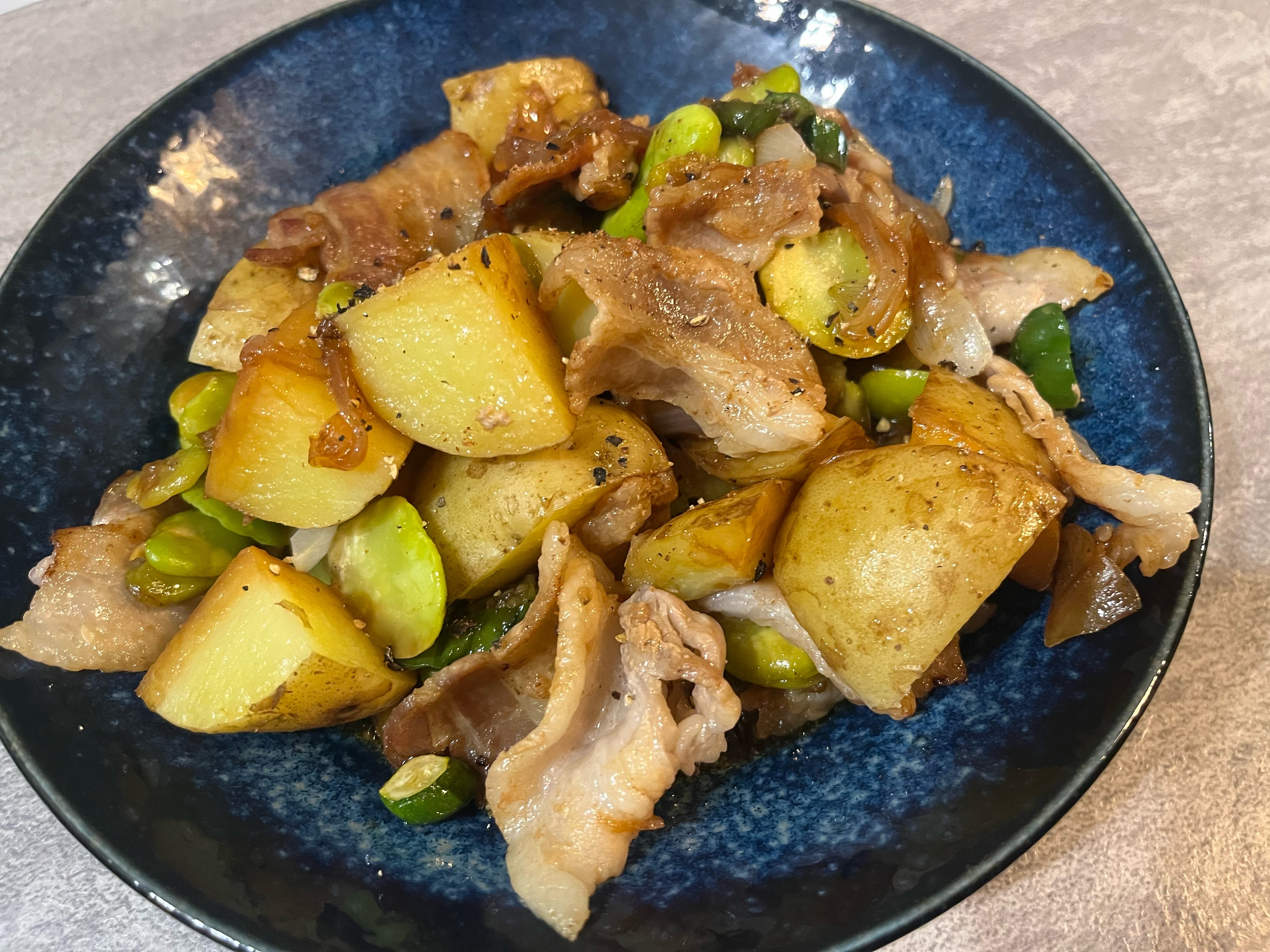 そら豆とじゃがいものイベリコ豚炒め レシピ・作り方