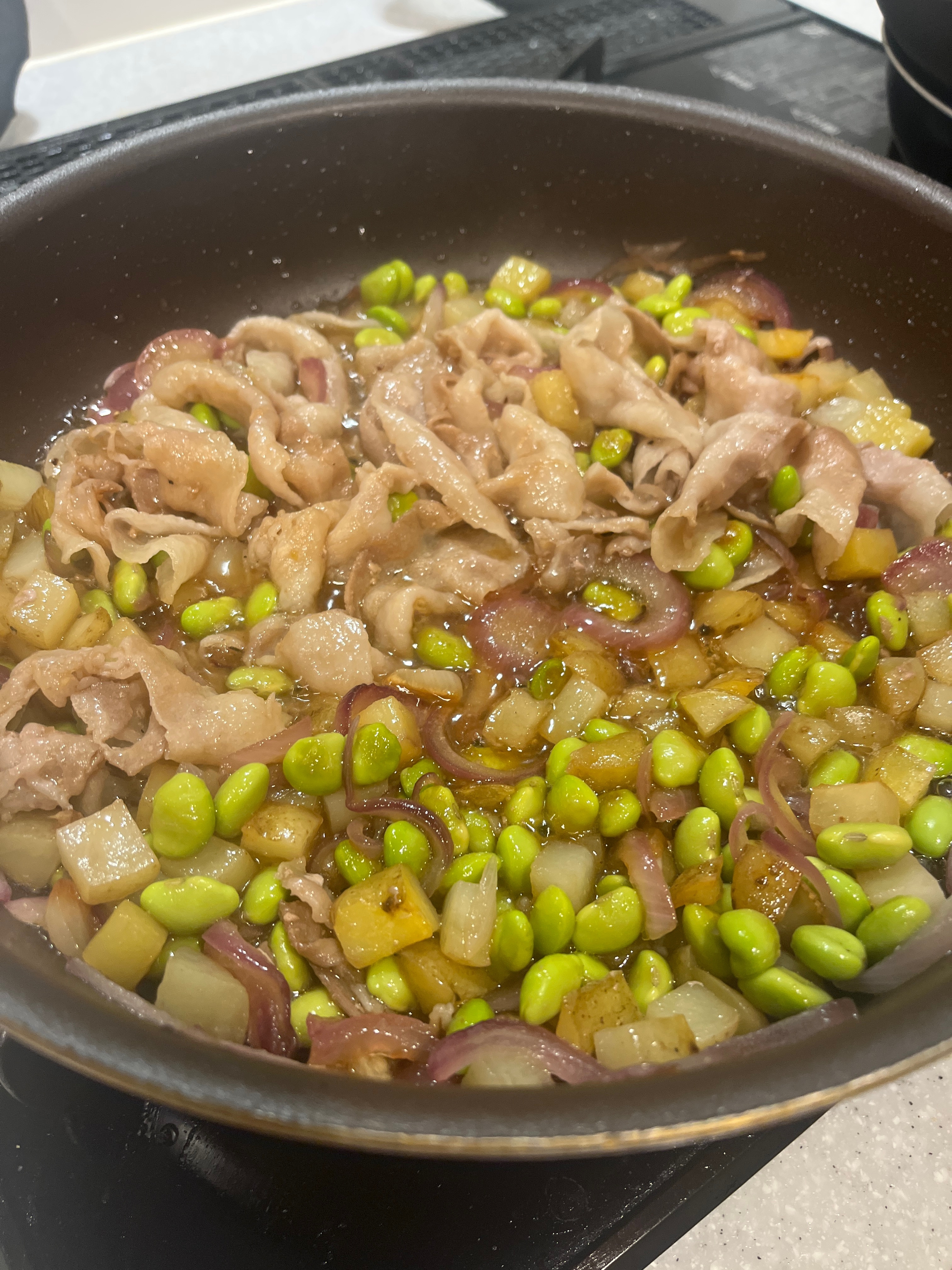 枝豆と豚肉の香ばしポテト炒め レシピ・作り方