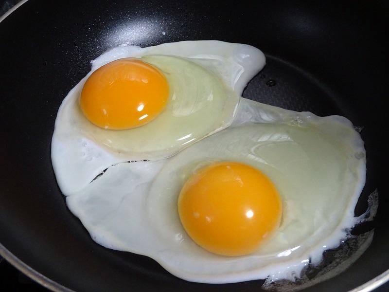 別のフライパンで、半熟の目玉焼きを焼きます。