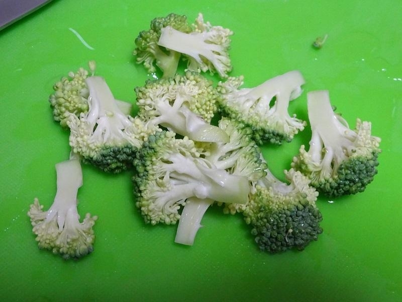 小房のブロッコリーを、さらに3~4分割します。