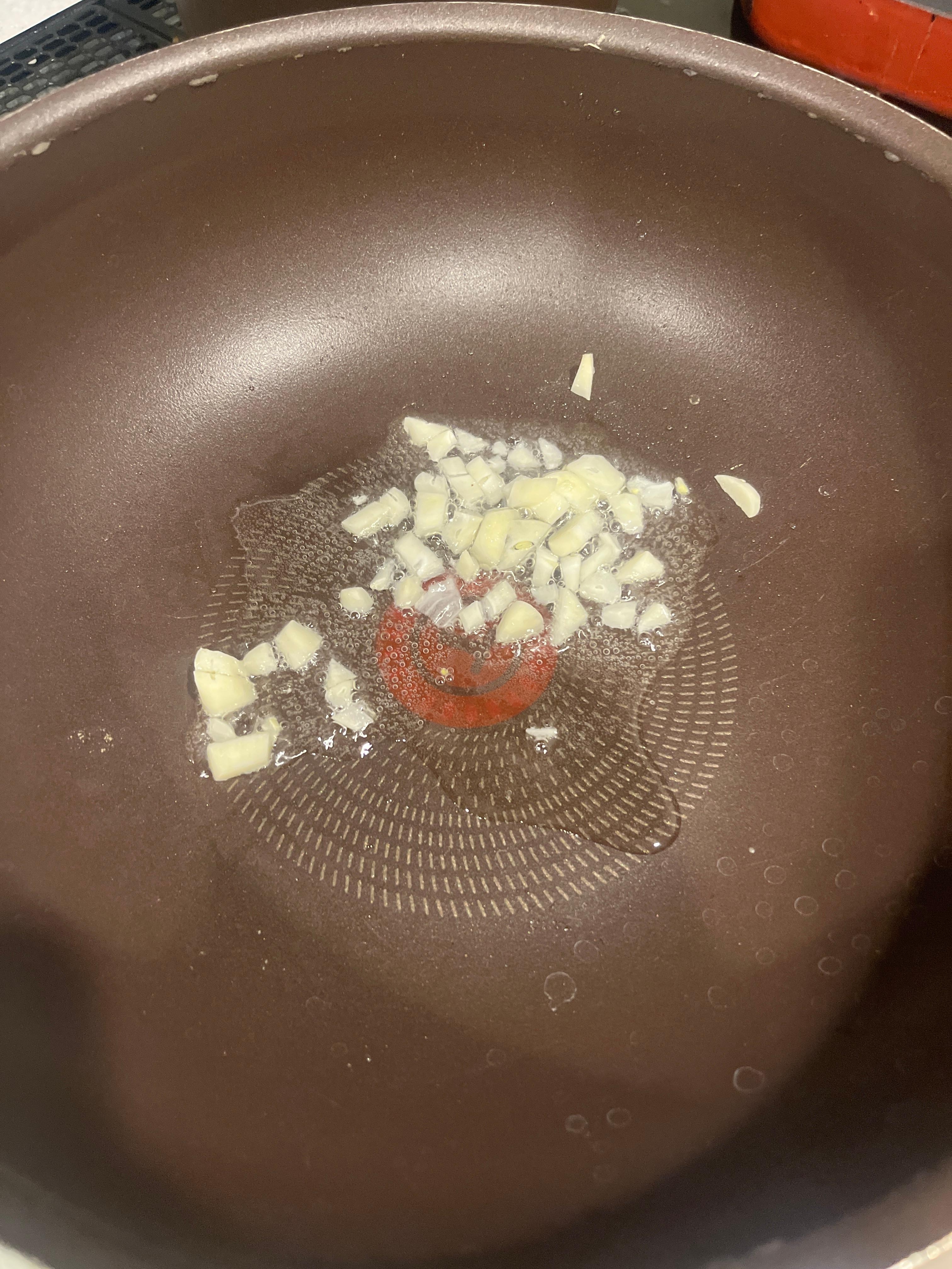 にんにく(みじん切り)をフライパンに入れ、分量外の油で香りが出るまで加熱する。