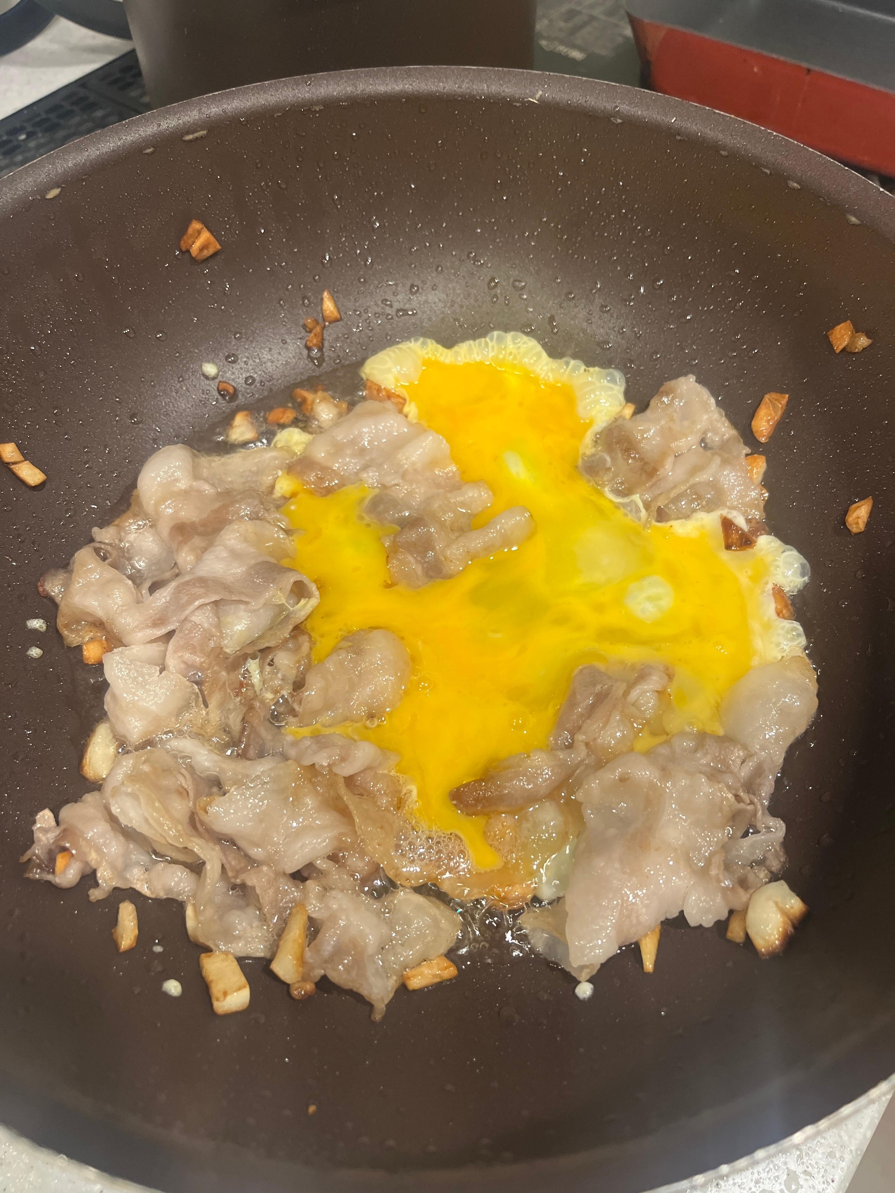溶き卵を加え、半熟〜完熟の間になるまで加熱する。