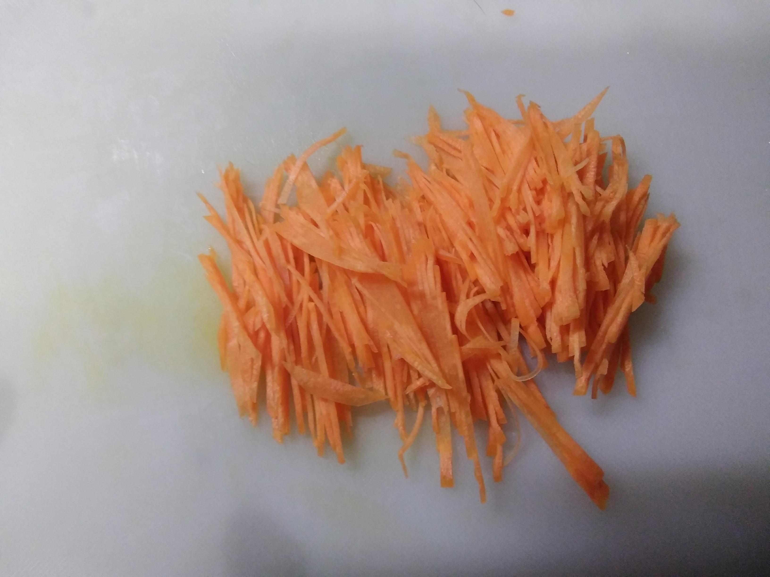 人参を千切りします。