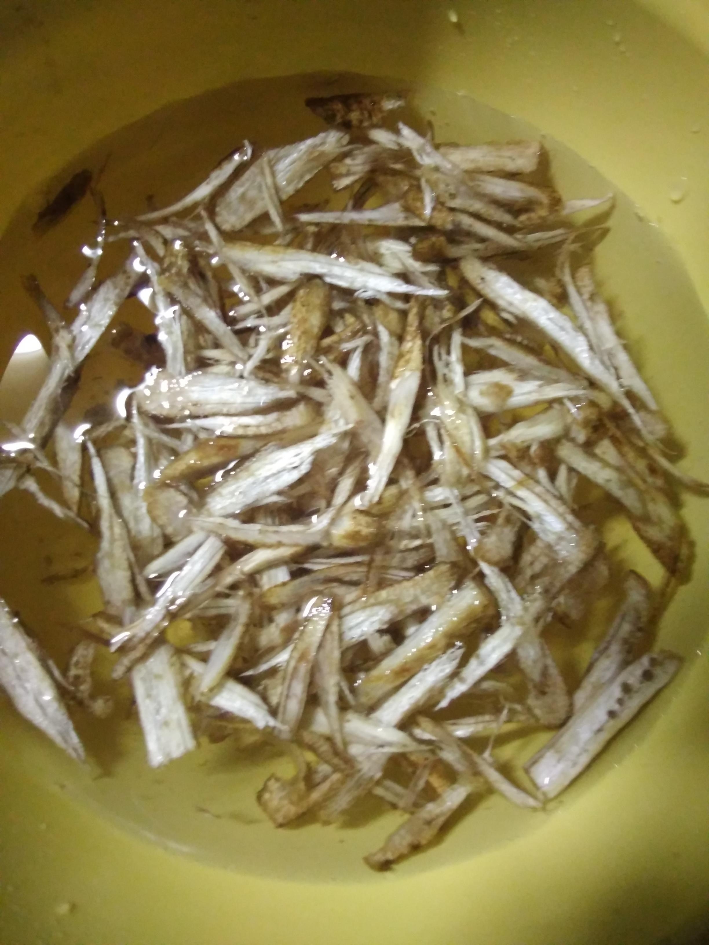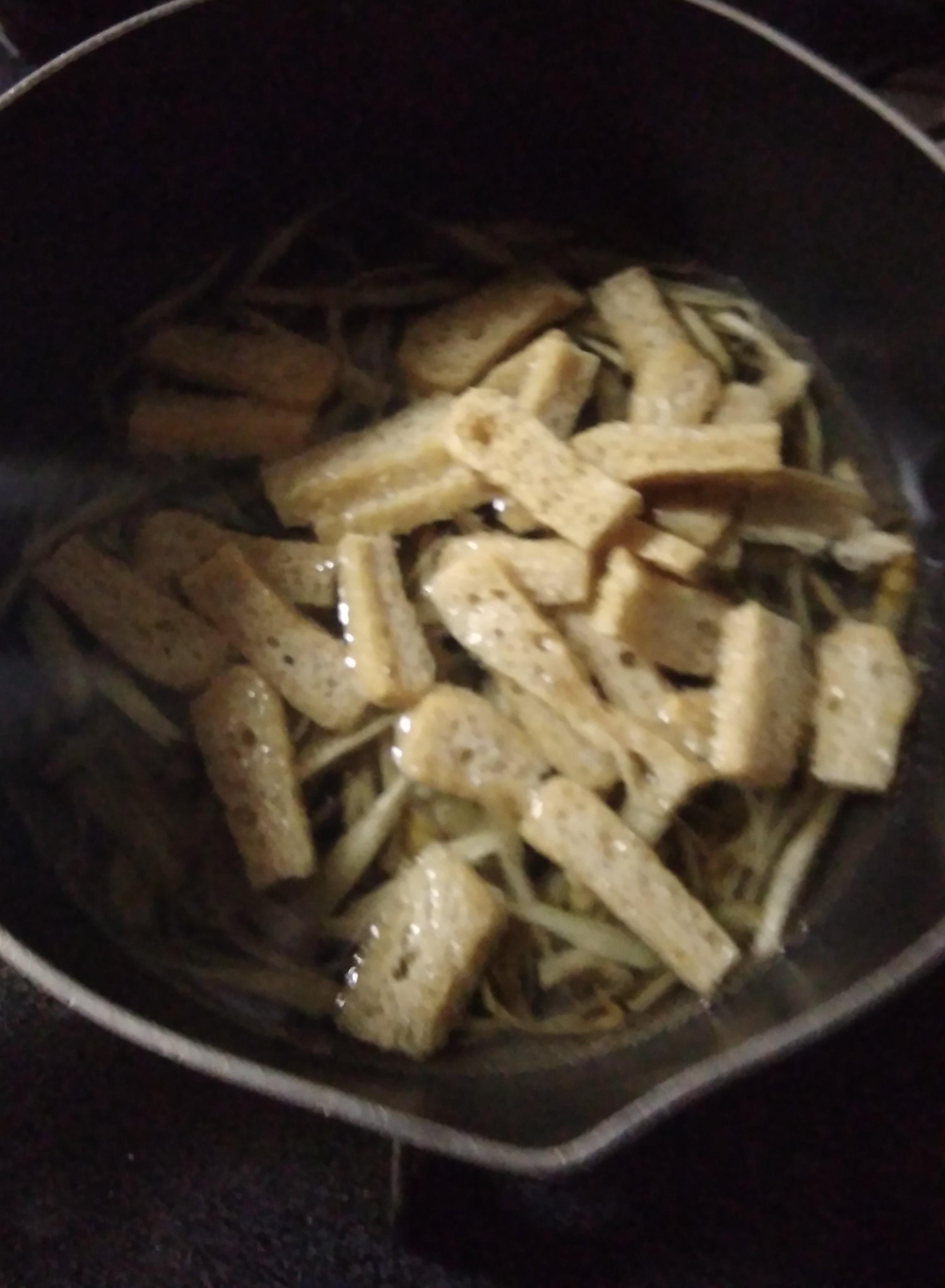 乾燥油揚げ、だし汁を入れ煮ます。