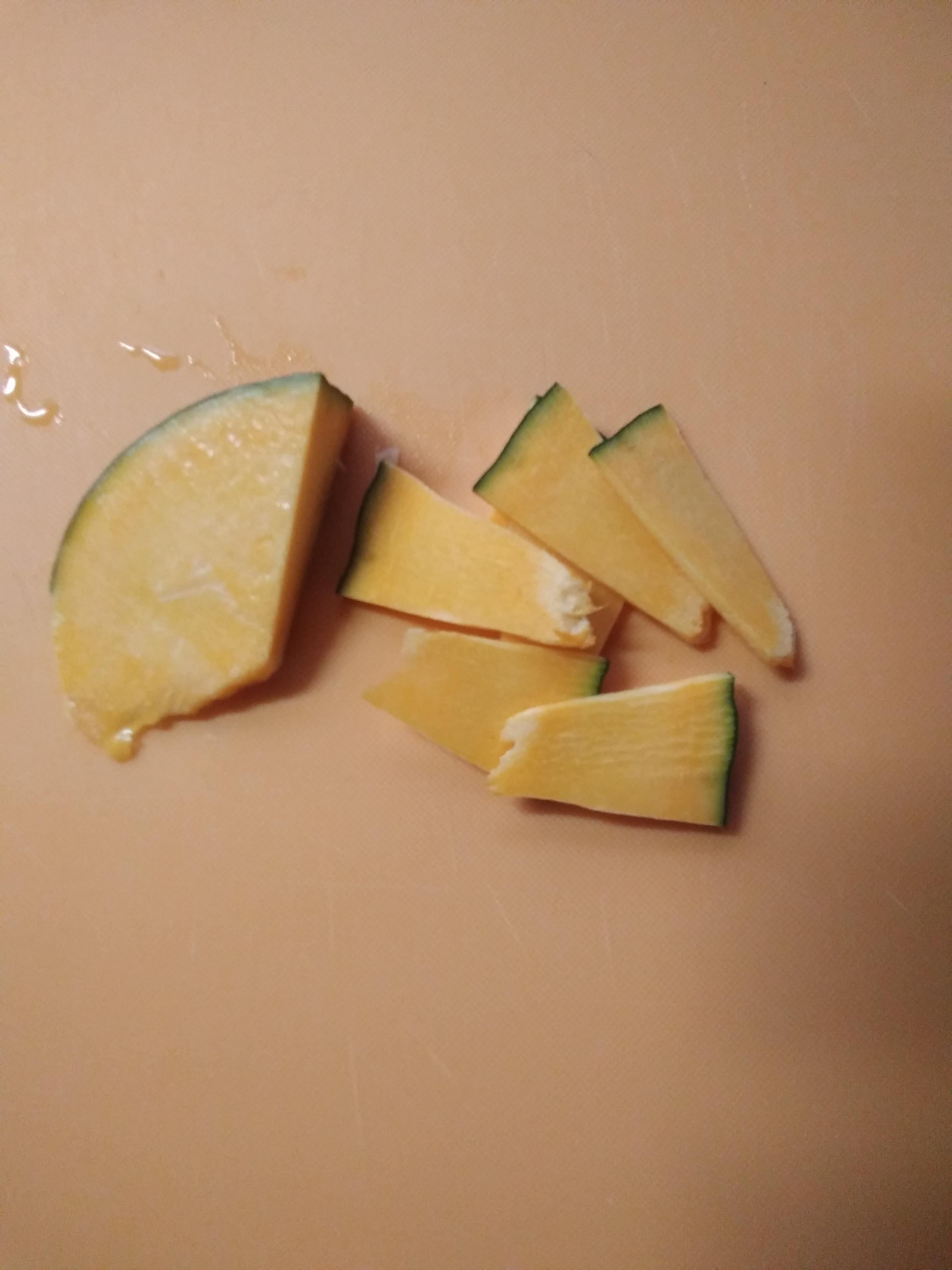 ポイボスさん♬保存してたかぼちゃと、収穫したほうれん草でお味噌汁、作り置きにしました✨いただくの楽しみです♥