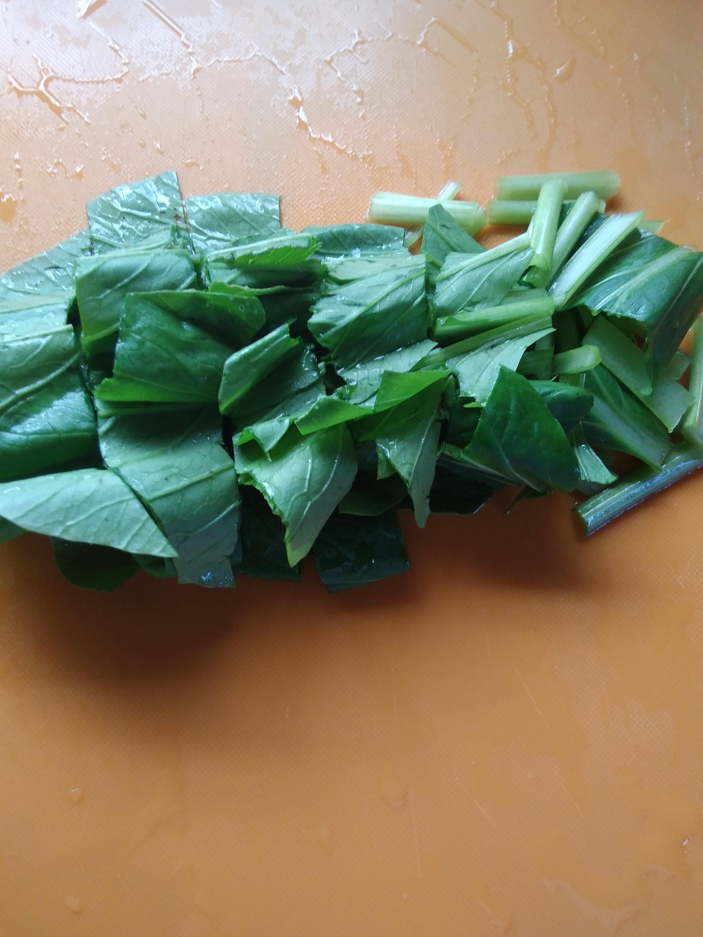 家庭菜園でやっと収穫出来た小松菜を使いたく作りました。