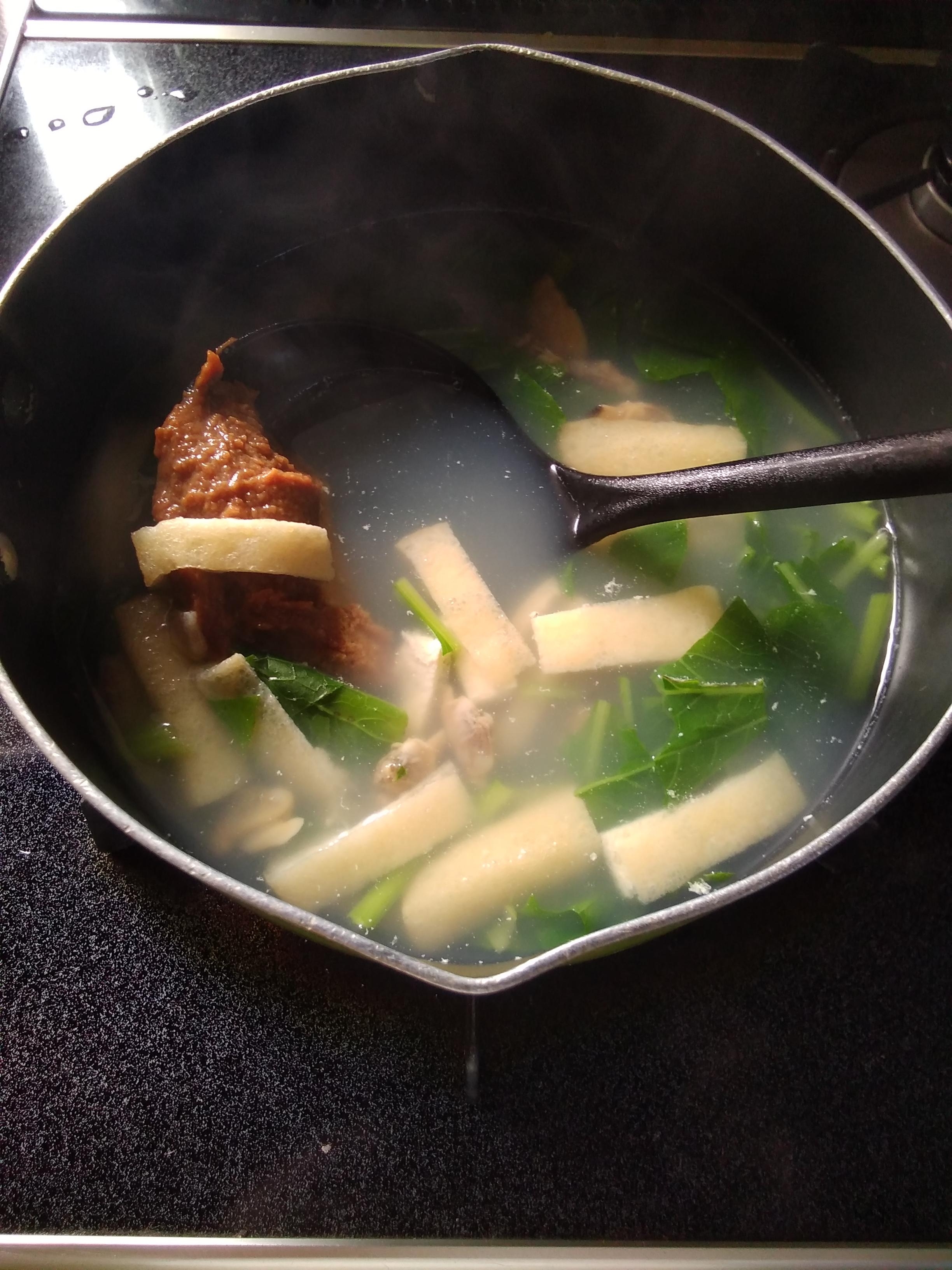 あさりと小松菜と油揚げの味噌汁 レシピ・作り方