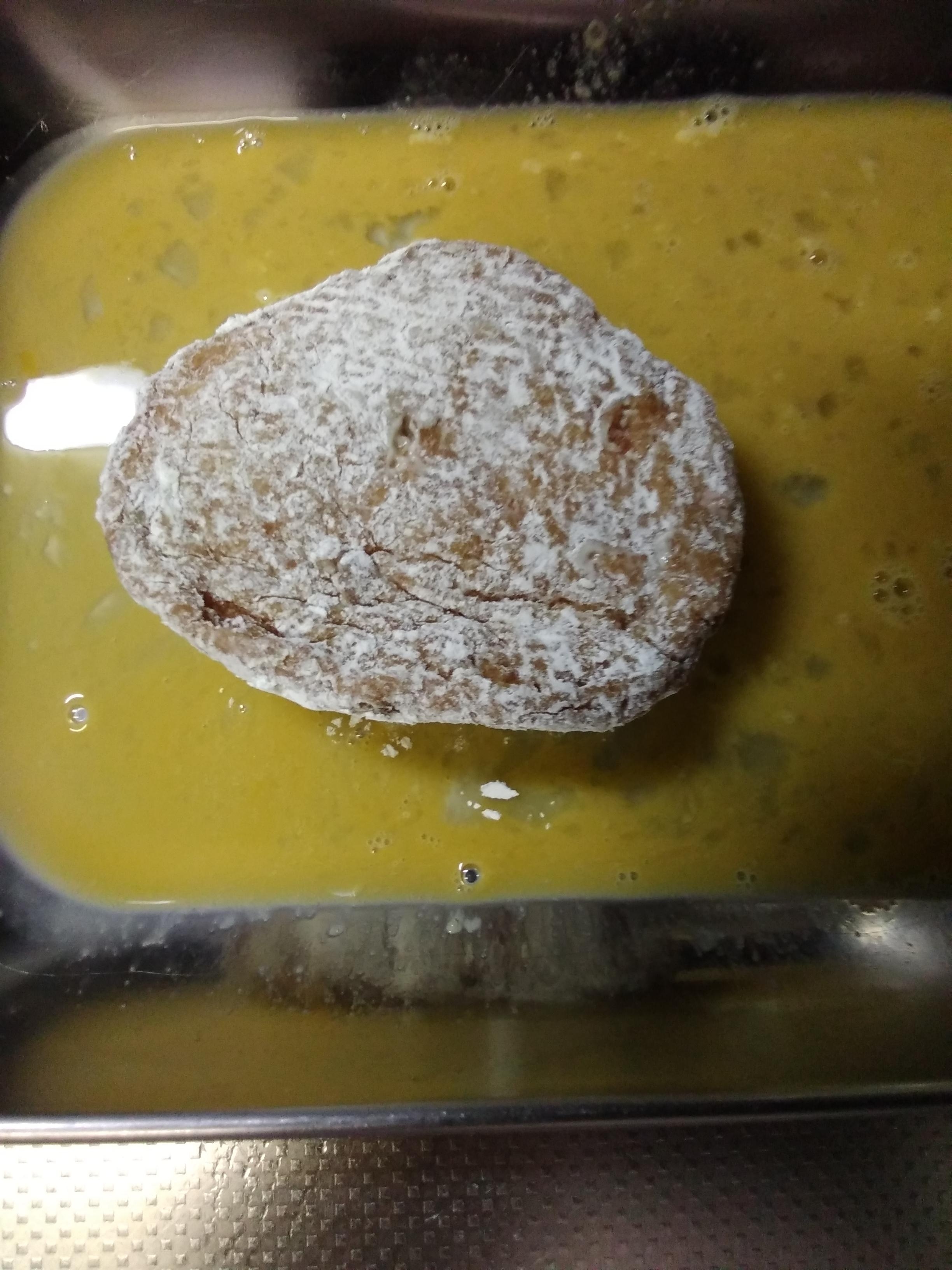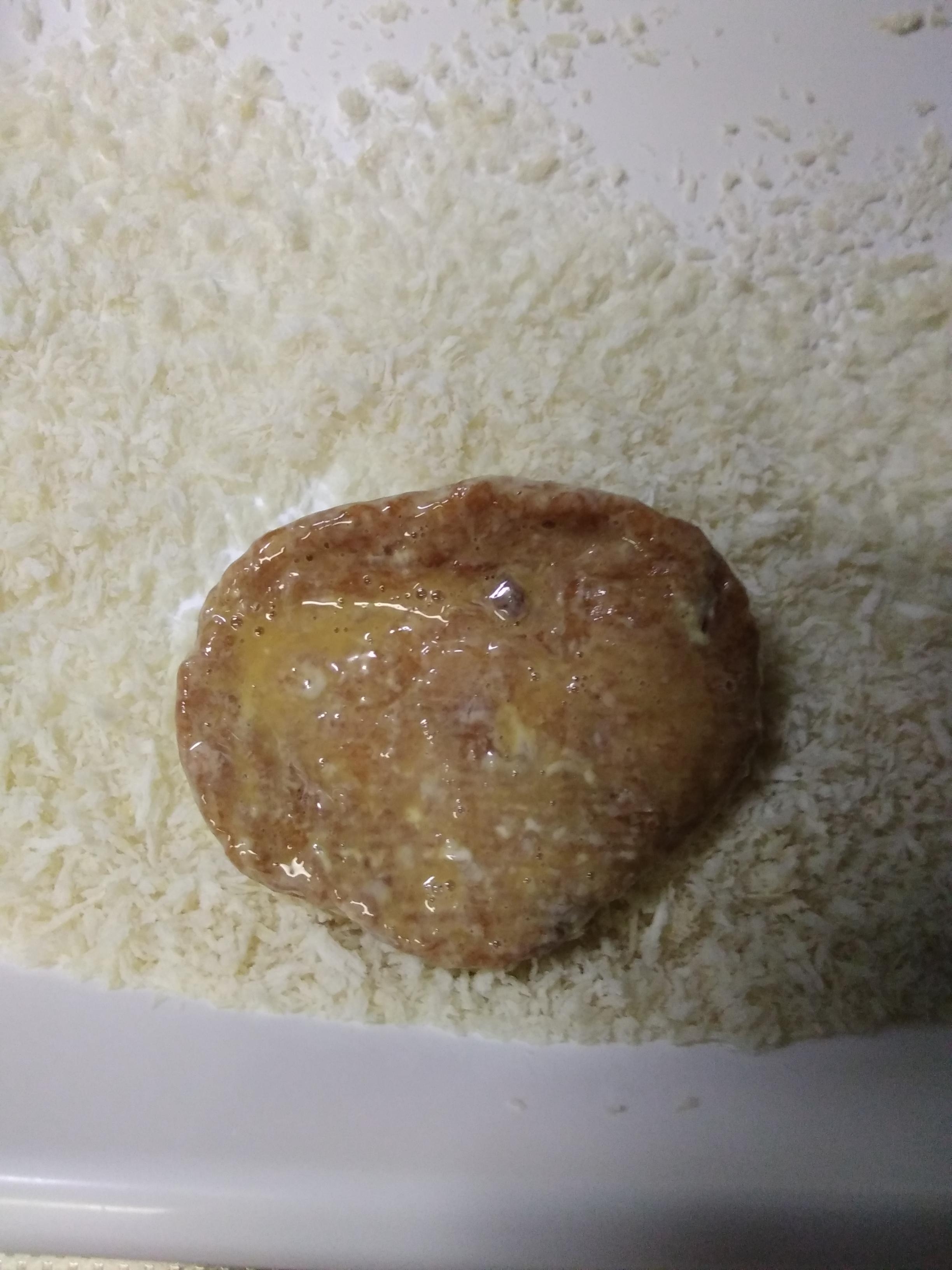 4のさつま揚げにパン粉をつけます。