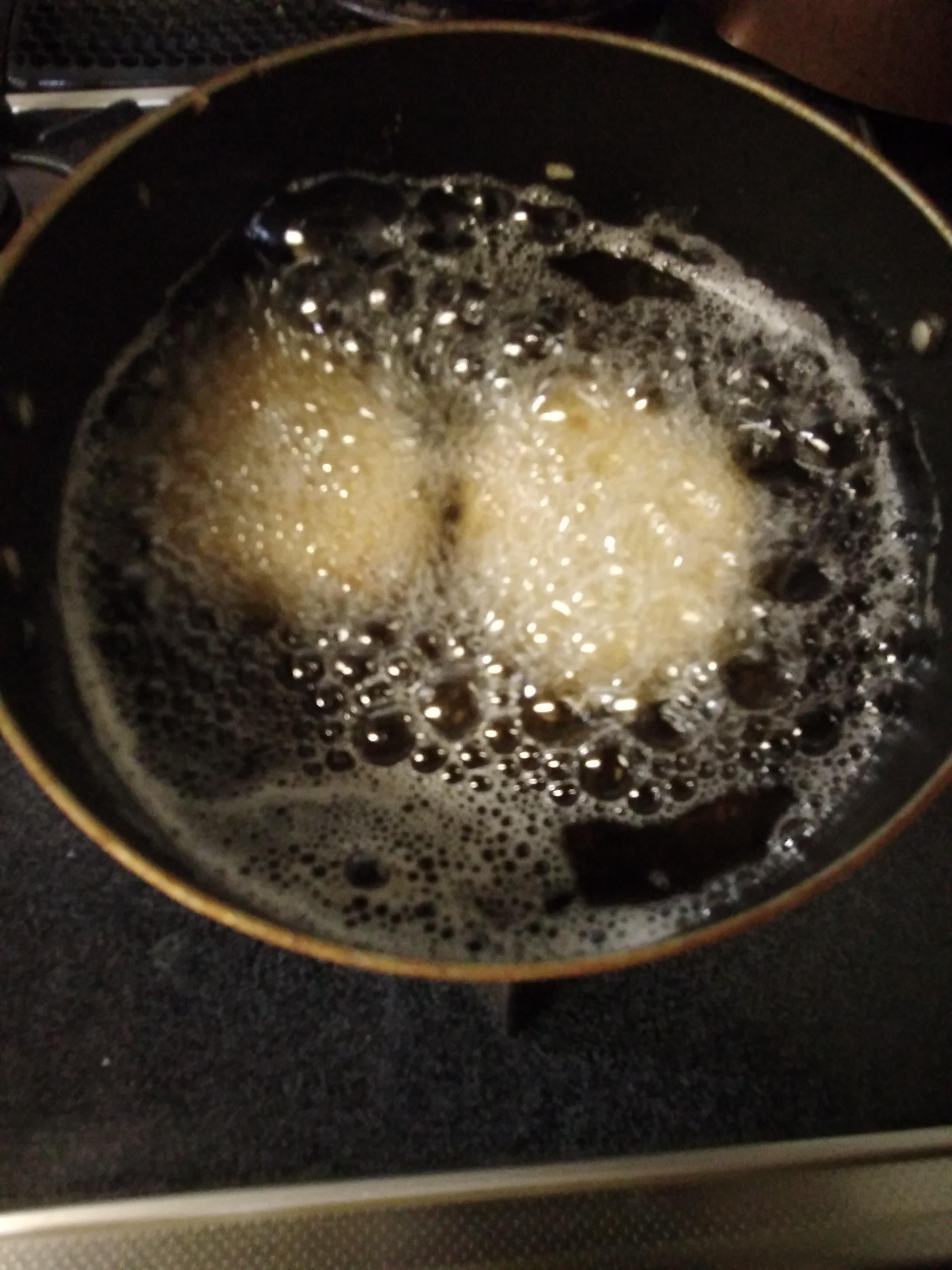 180℃で3分揚げます。