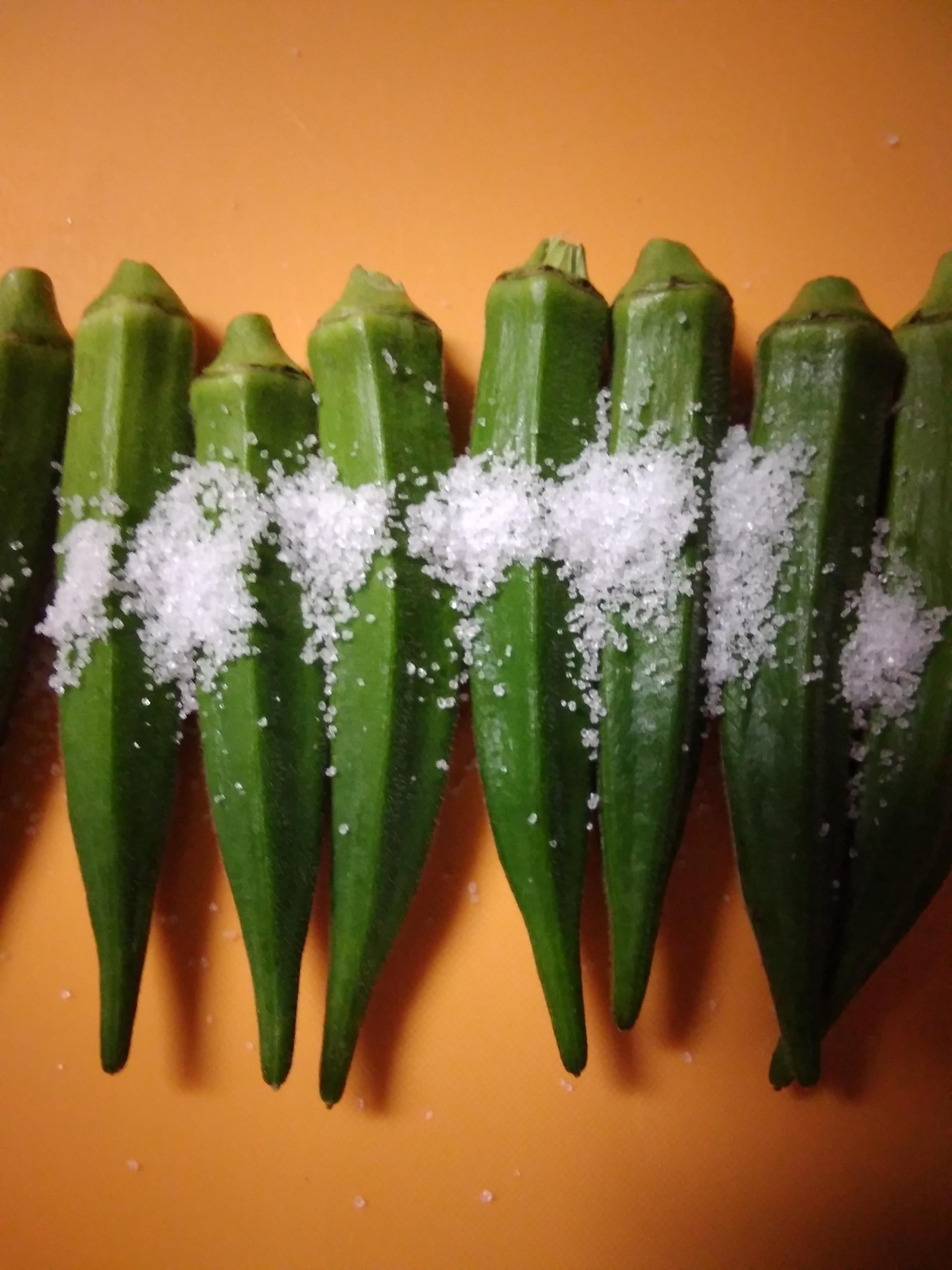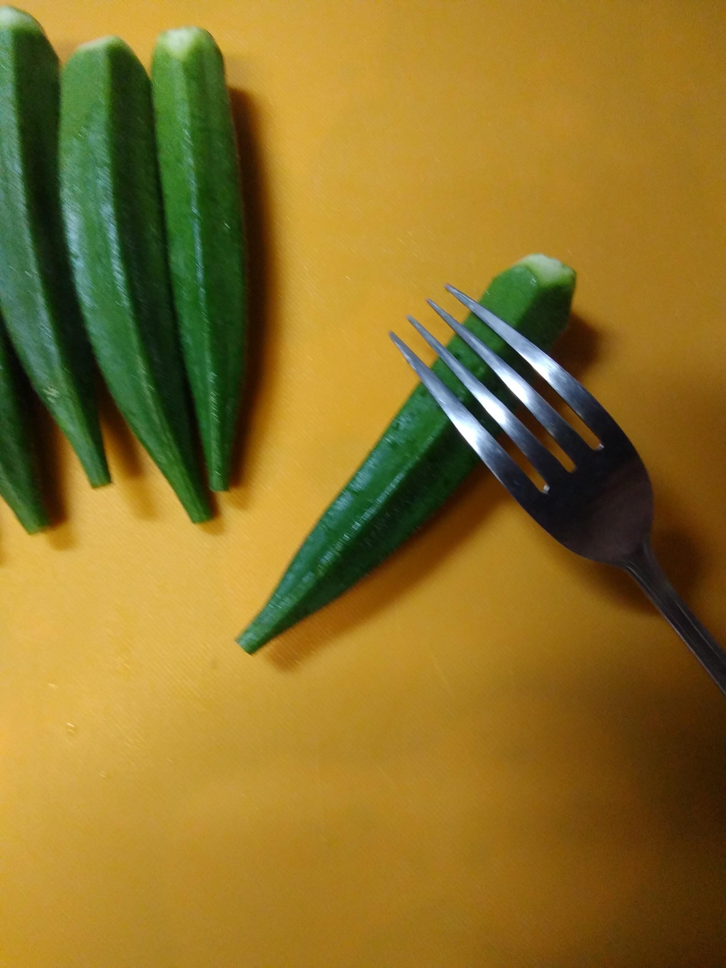 オクラの表面にフォークで穴を空けるのを忘れないで下さい。 破裂する恐れがあり危険です。