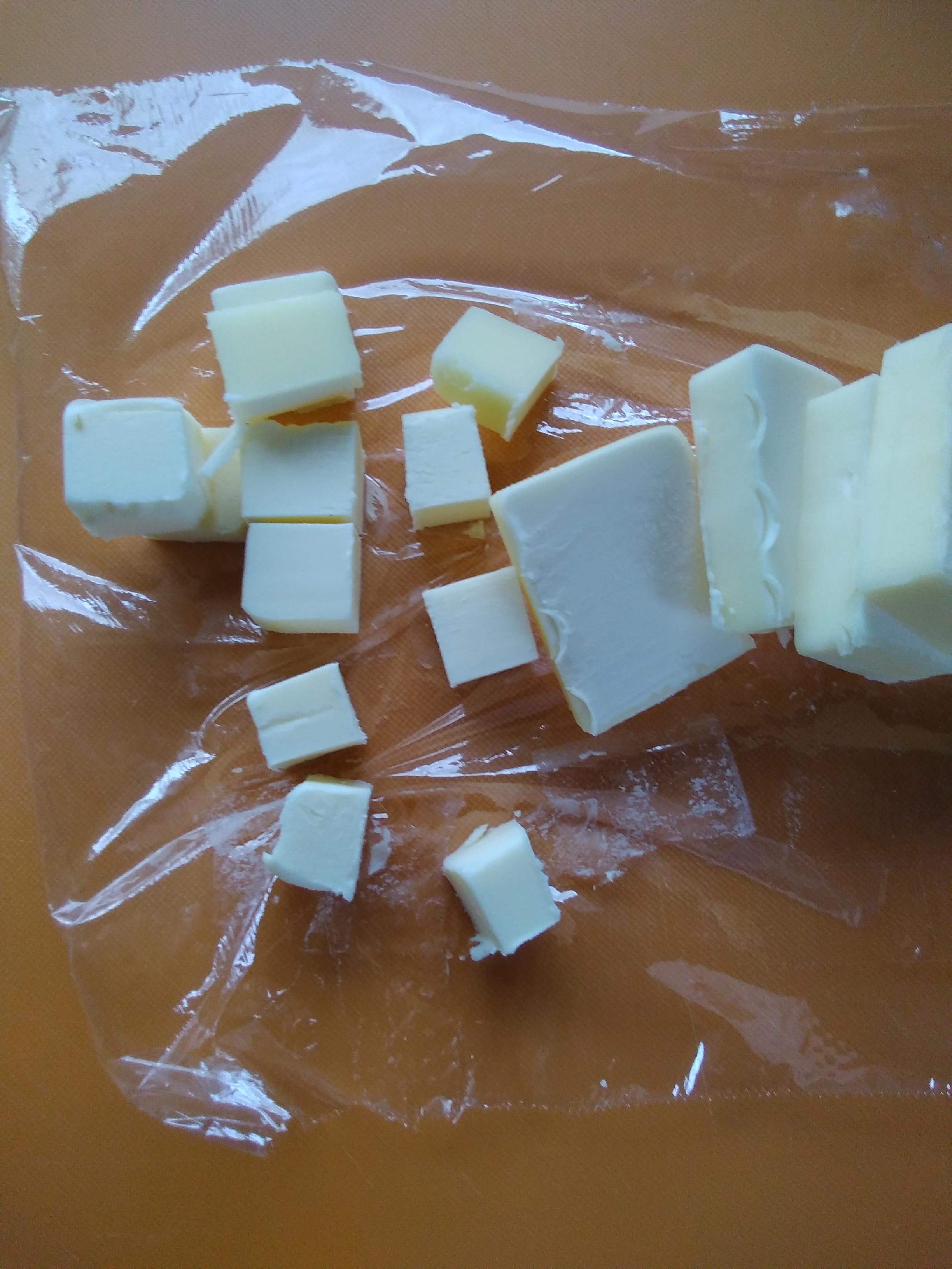 バターを2cm角に切ります。