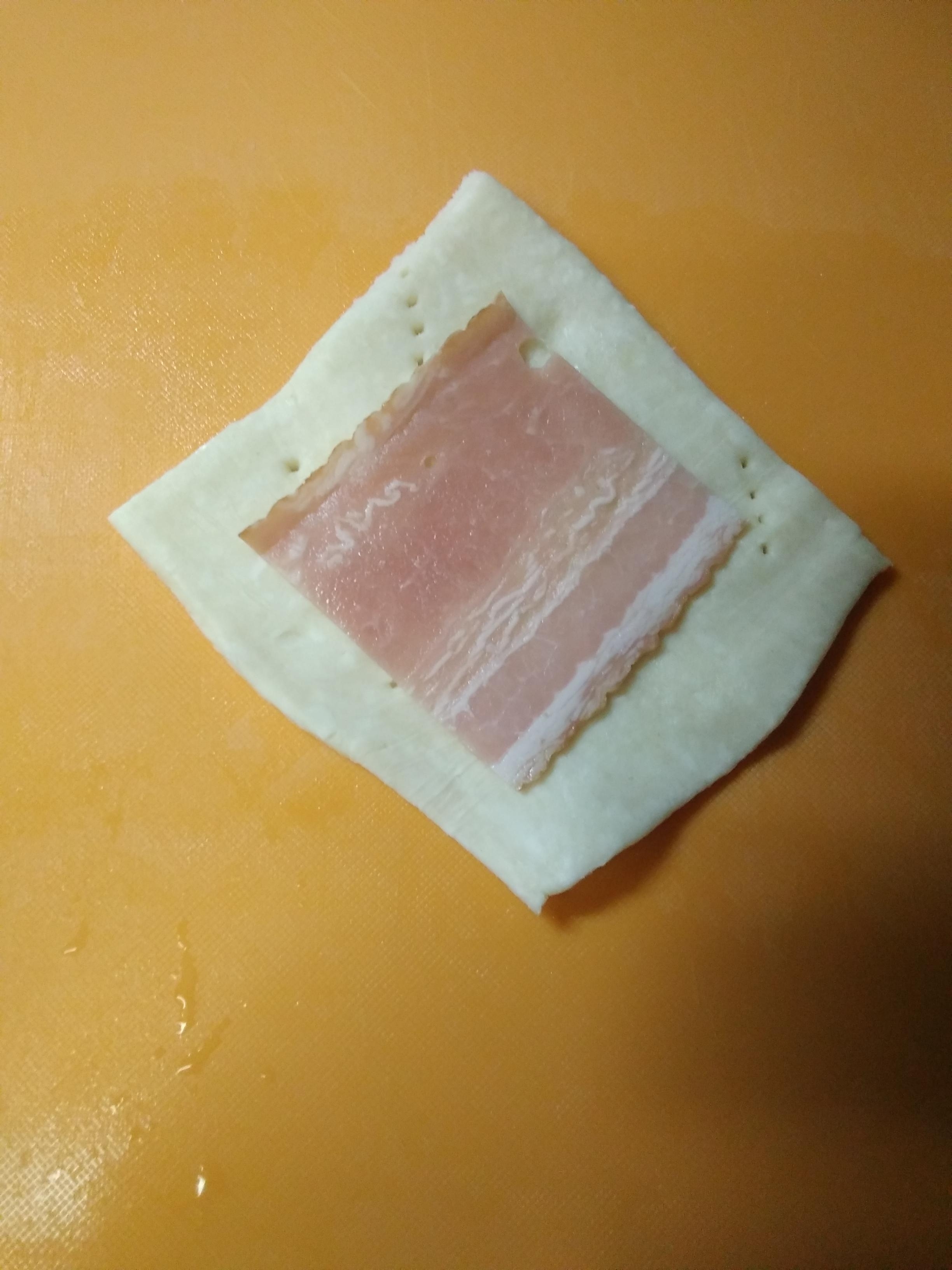9の生地を1枚置きベーコンをのせます。