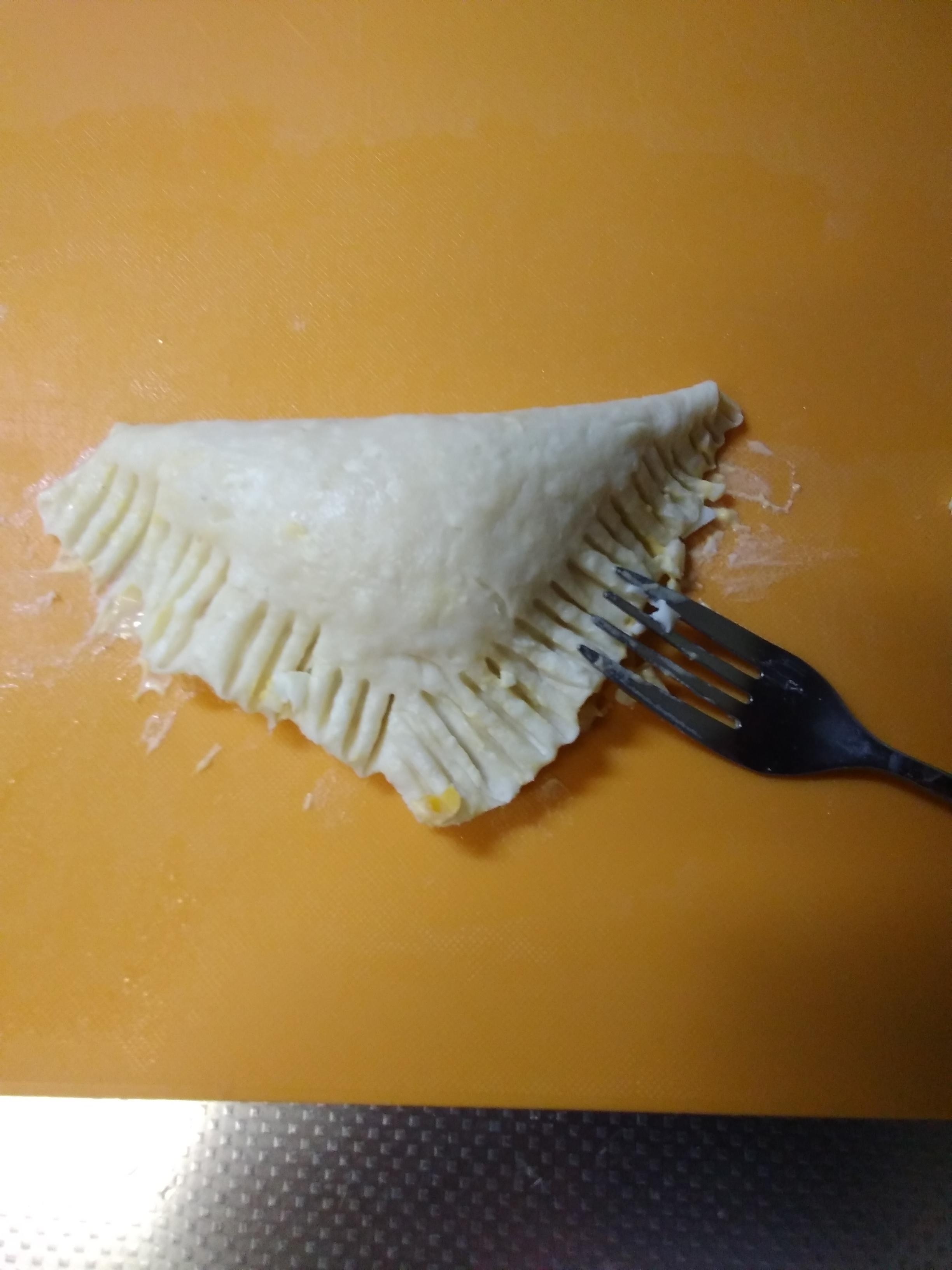 折りたたみ端をフォークで閉じます。