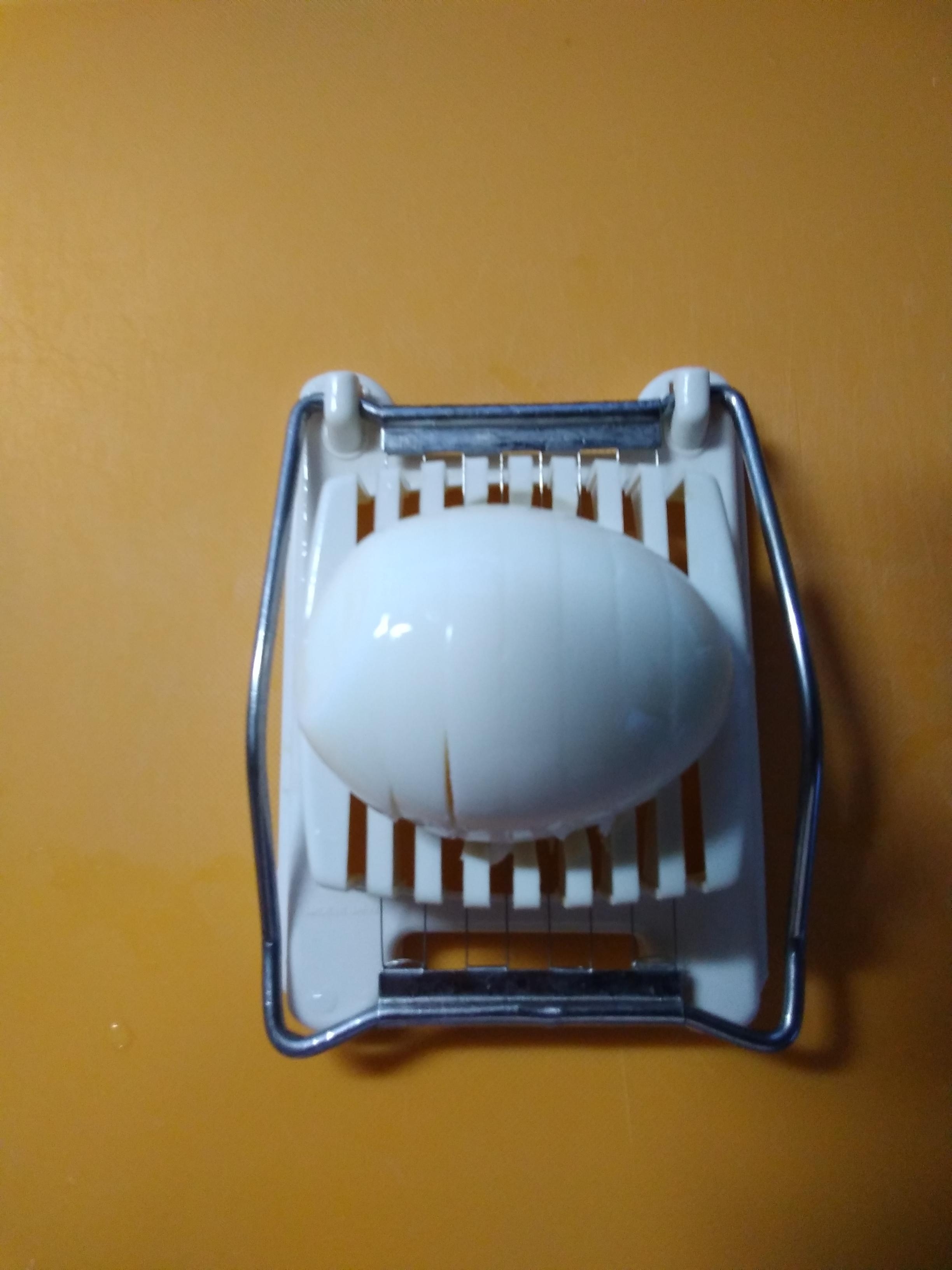 ゆで卵を卵カッターでみじん切りにします。