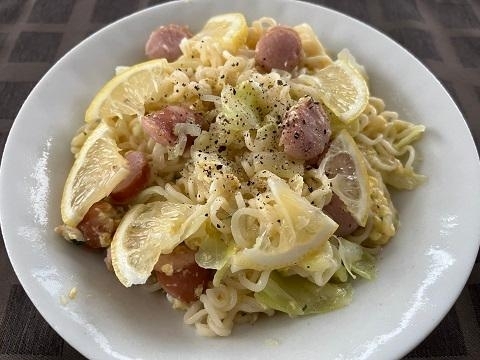 - 塩ラーメン袋麺でレモン塩ボナーラ