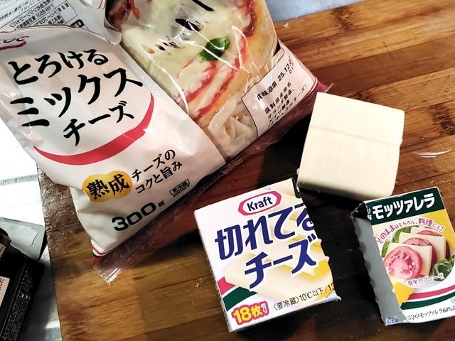 今回は、とろけるミックスチーズと切れてるチーズ(モッツアレラ)の国産チーズを使いました。