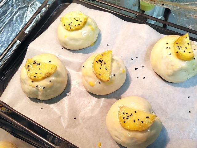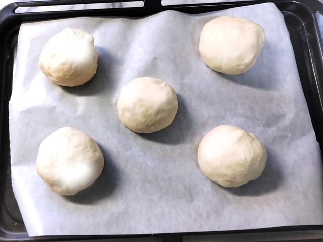 - 19 生地が膨らんだら、オーブンを200度(時間は16~18分)に予熱を開始する。