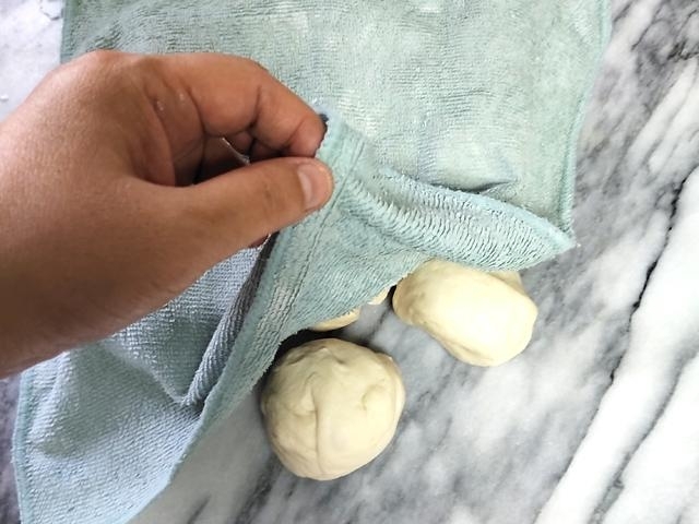 生地にパンチをしてガス抜きをしたら、スケッパーなどで生地を10等分し、それぞれ丸める。