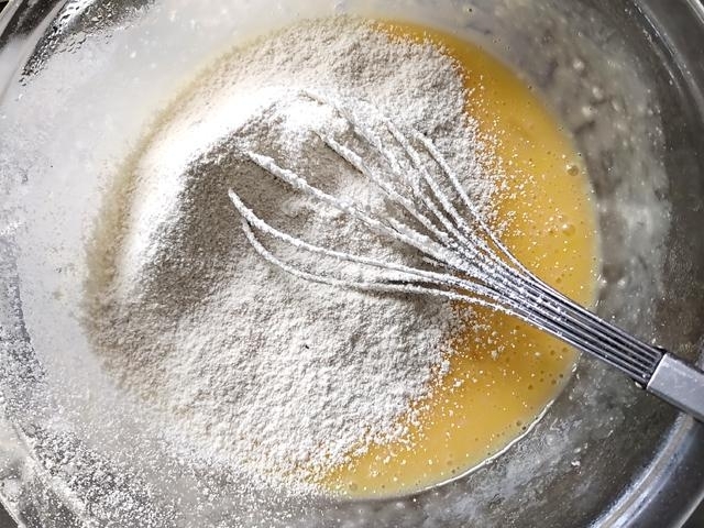 薄力粉を振るって加え、粉っぽさがなくなるまで混ぜる。