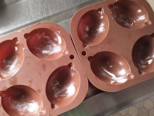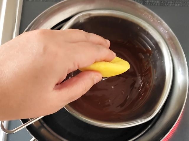 お湯が作れたら、冷めないうちに湯せん用ボールを浮かべ、チョコを溶かす。