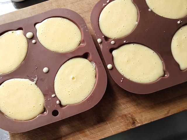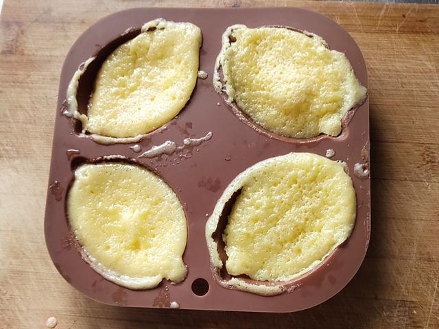 まず4個のケーキ型を、600wのレンジで、7~8分加熱する。