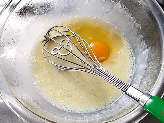 泡立て器で溶けるまで、しっかりと混ぜる。