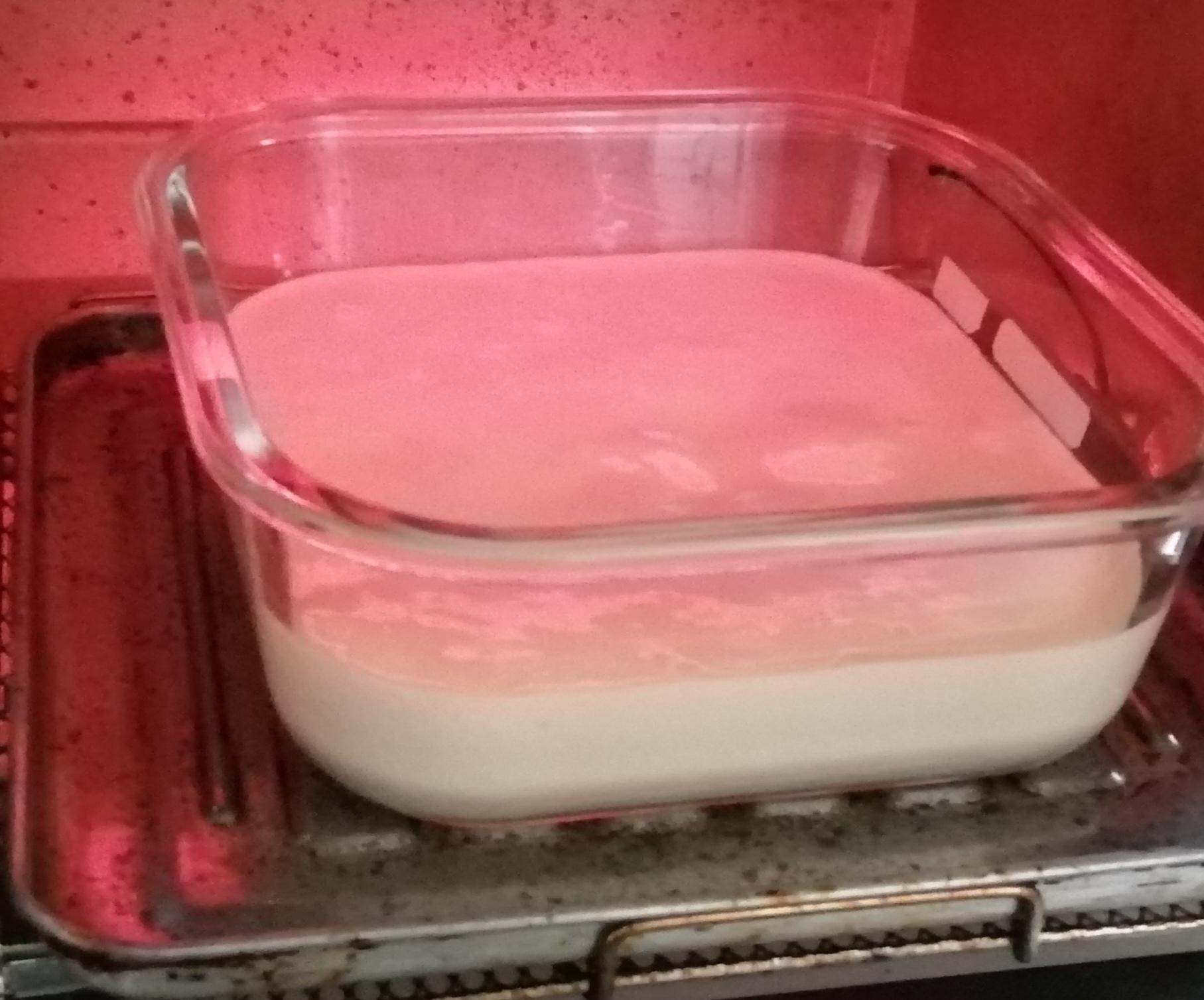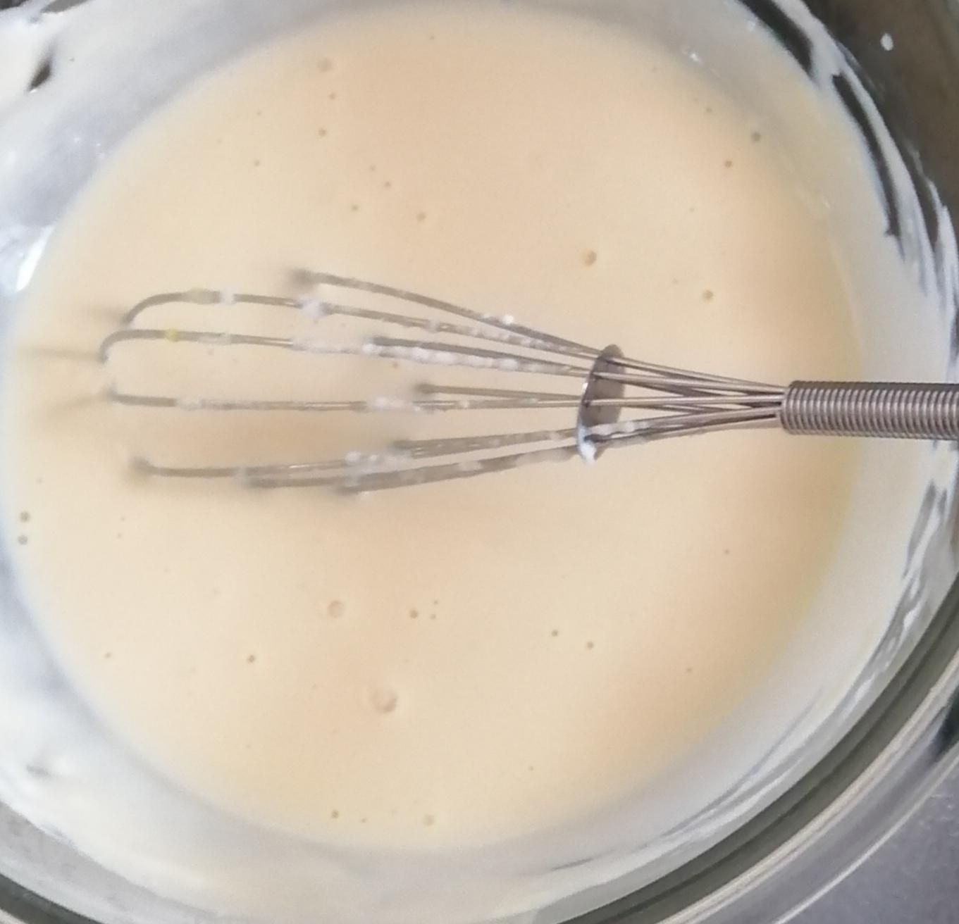 耐熱容器(オーブン・トースター対応品)に生地を流し入れる。