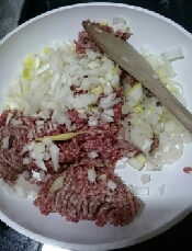 ごま油をひき、ミンチ肉(鶏むねミンチ以外ならパサつかないので代用可!)