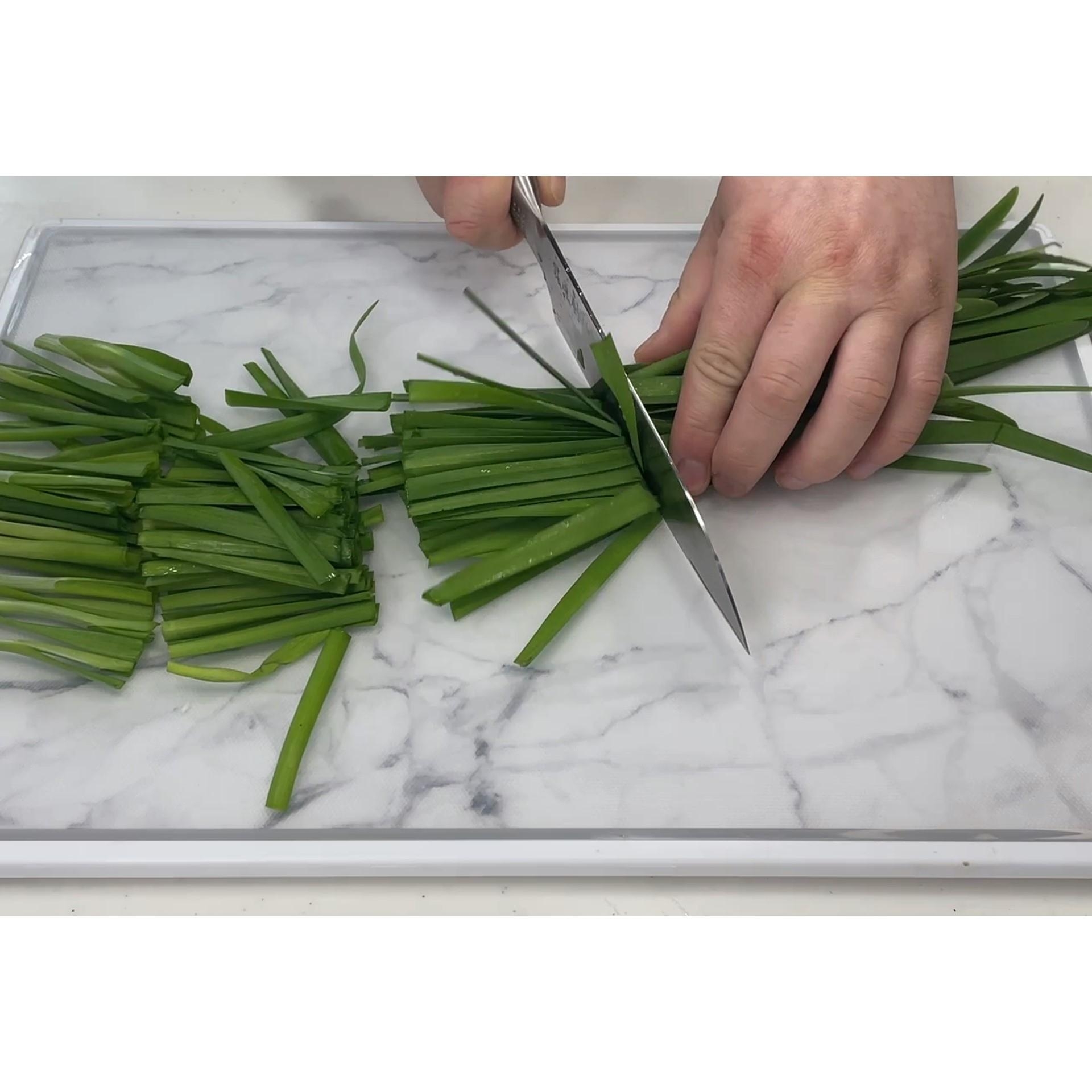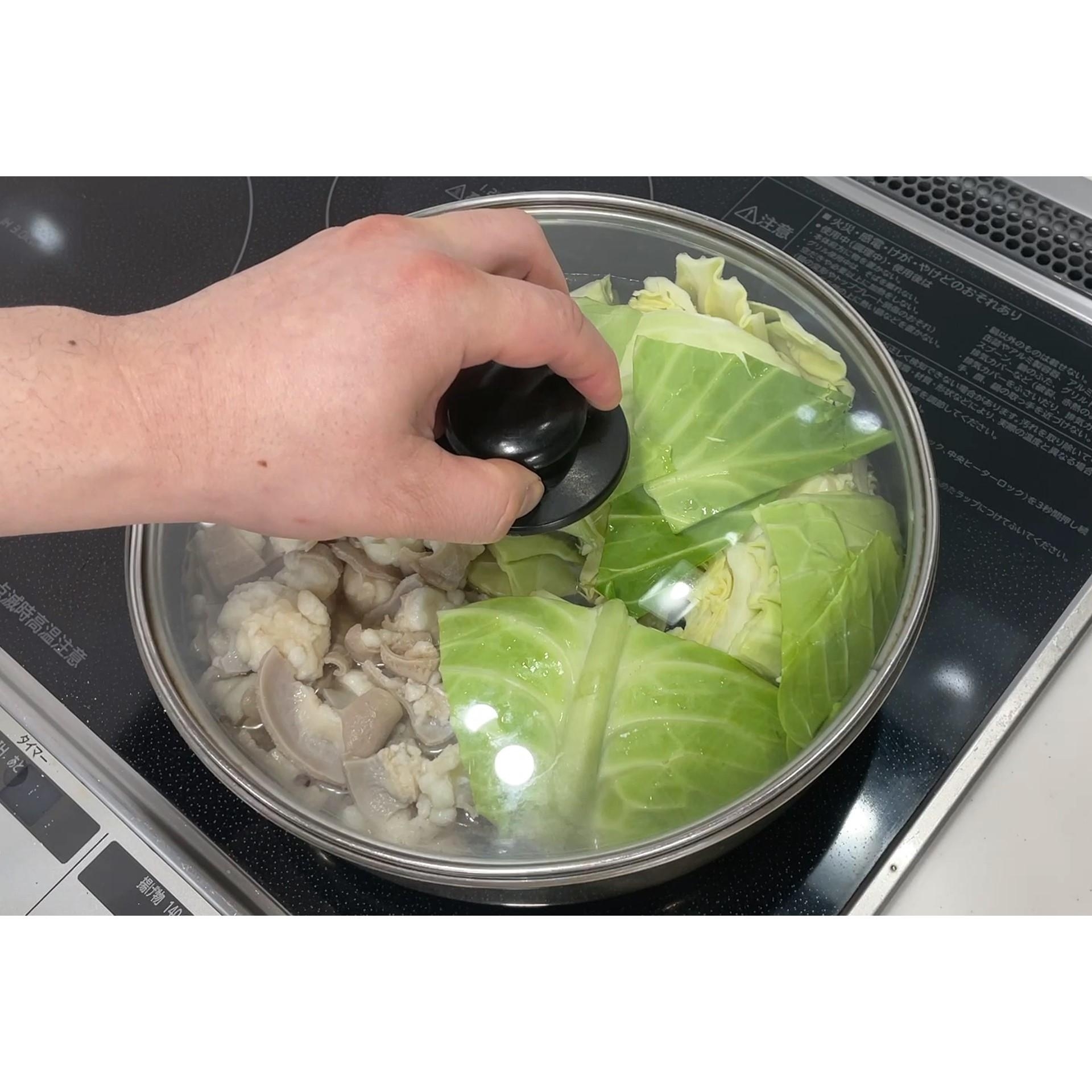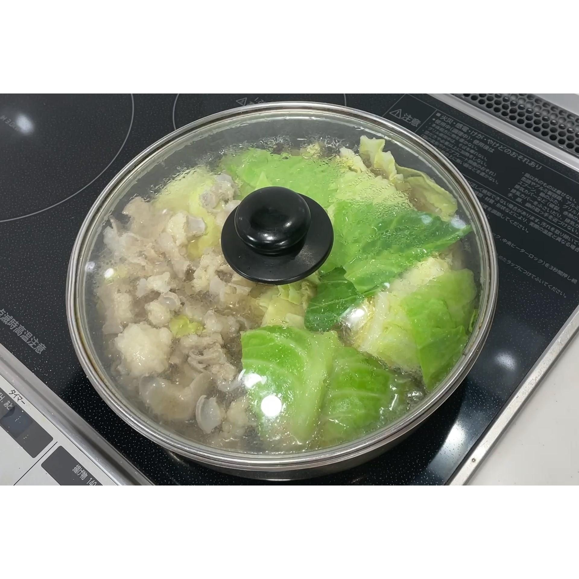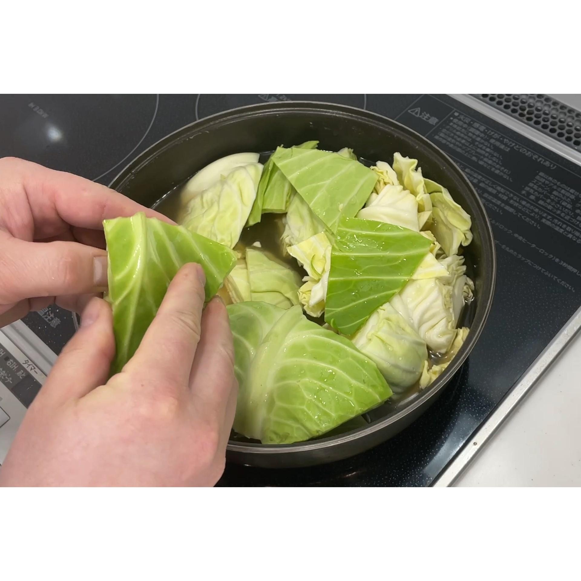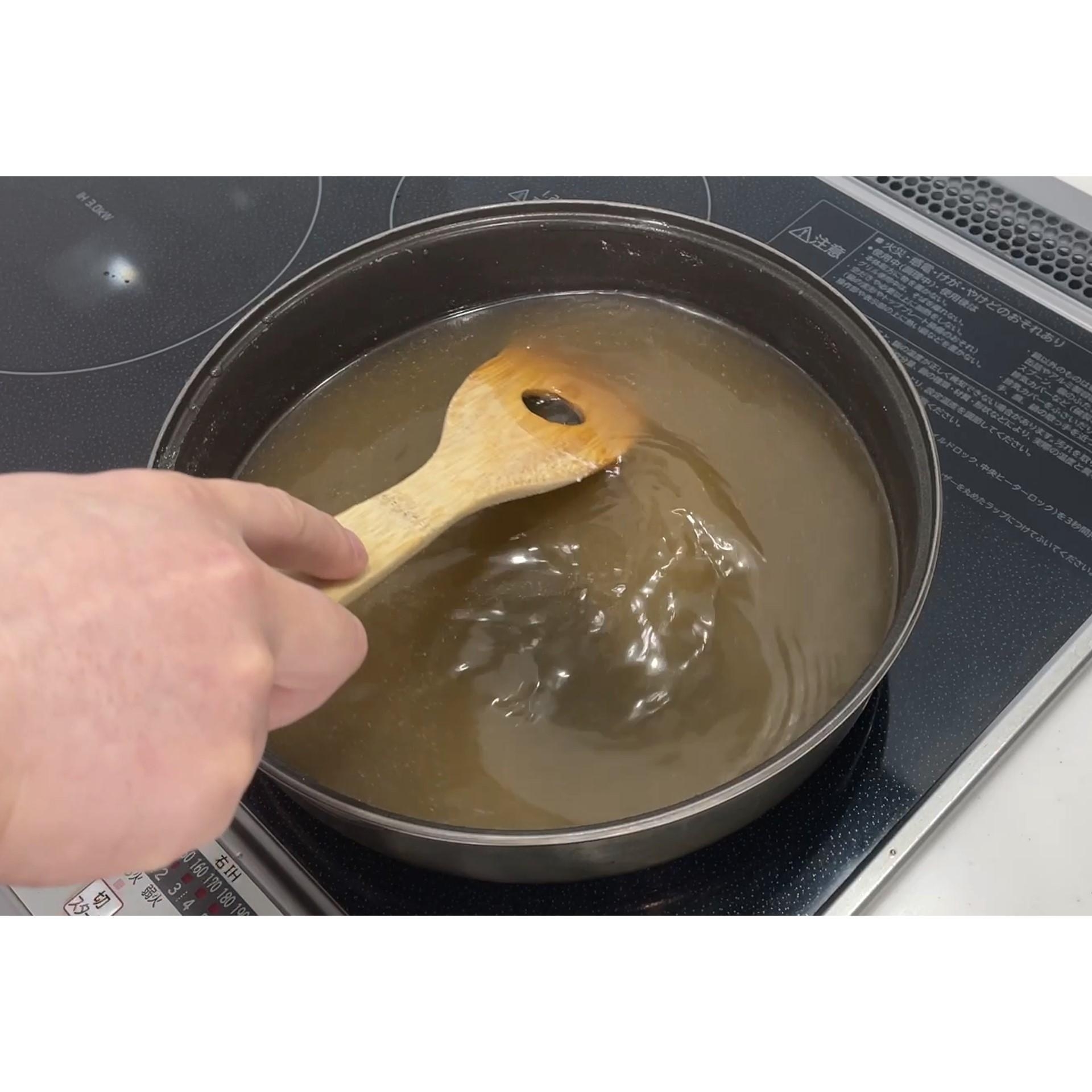 弱火で火にかけてにらがしんなりとなるまで煮ます。