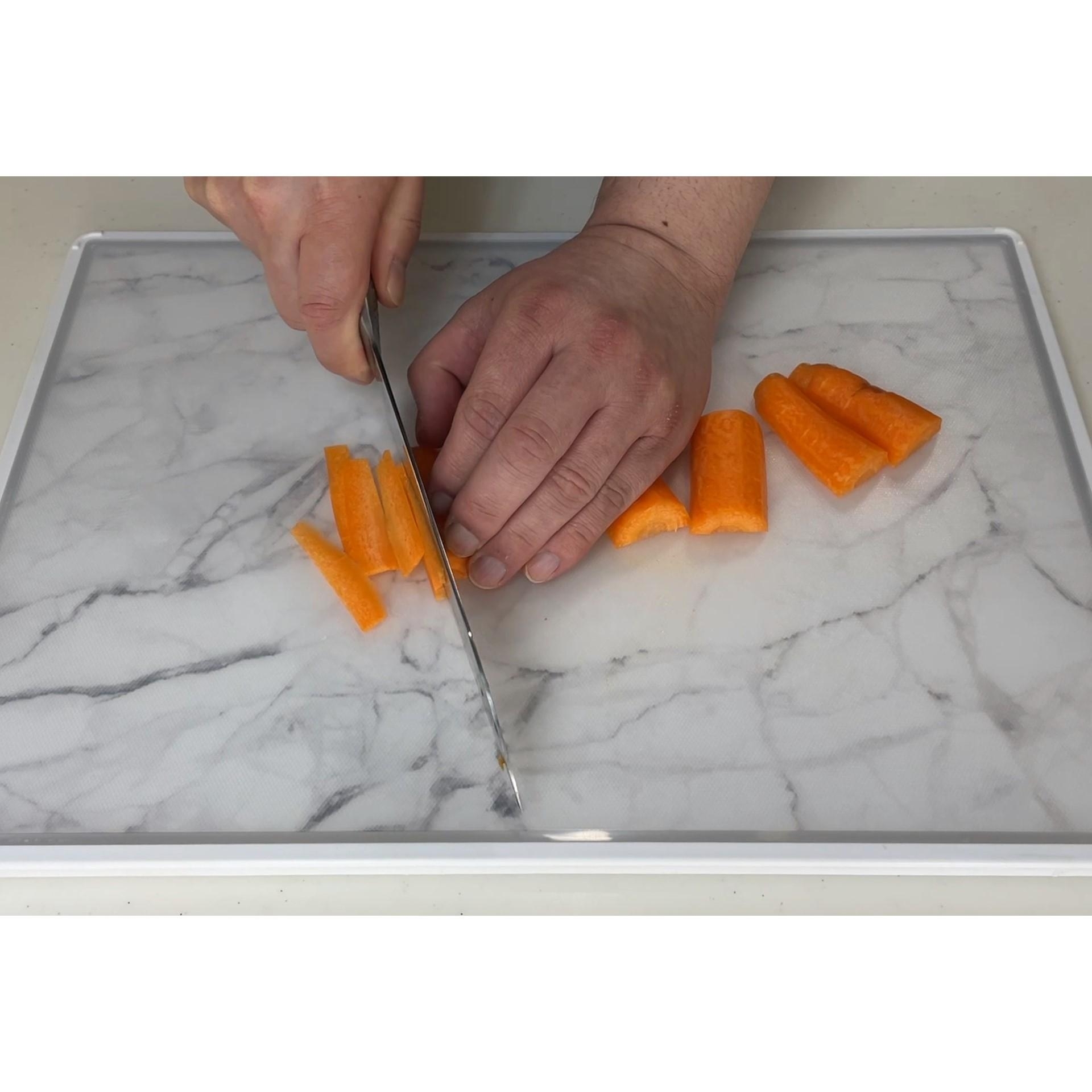 人参の皮をむいてカットします。