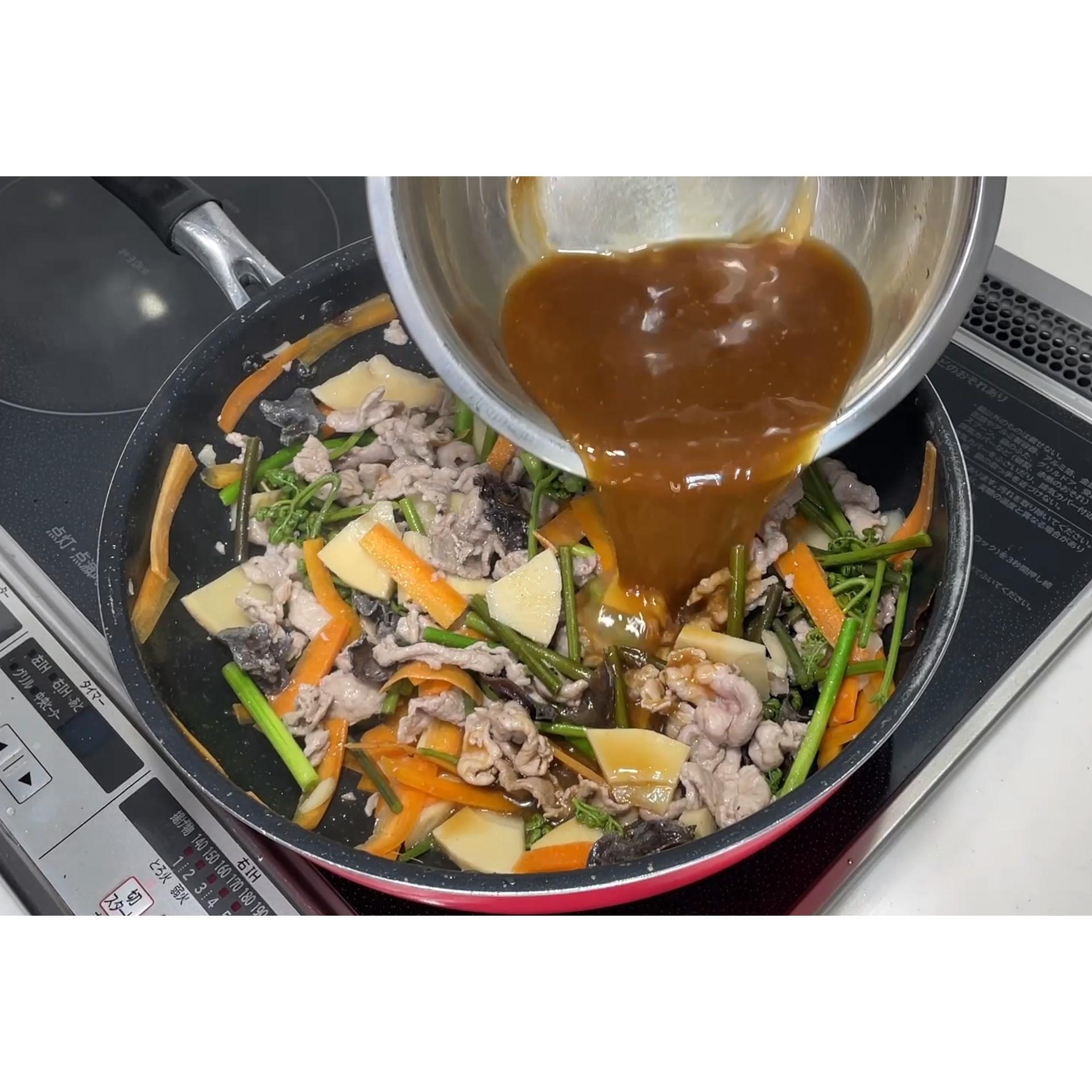 わらびとたけのこの豚黒酢炒め★動画あり★ レシピ・作り方