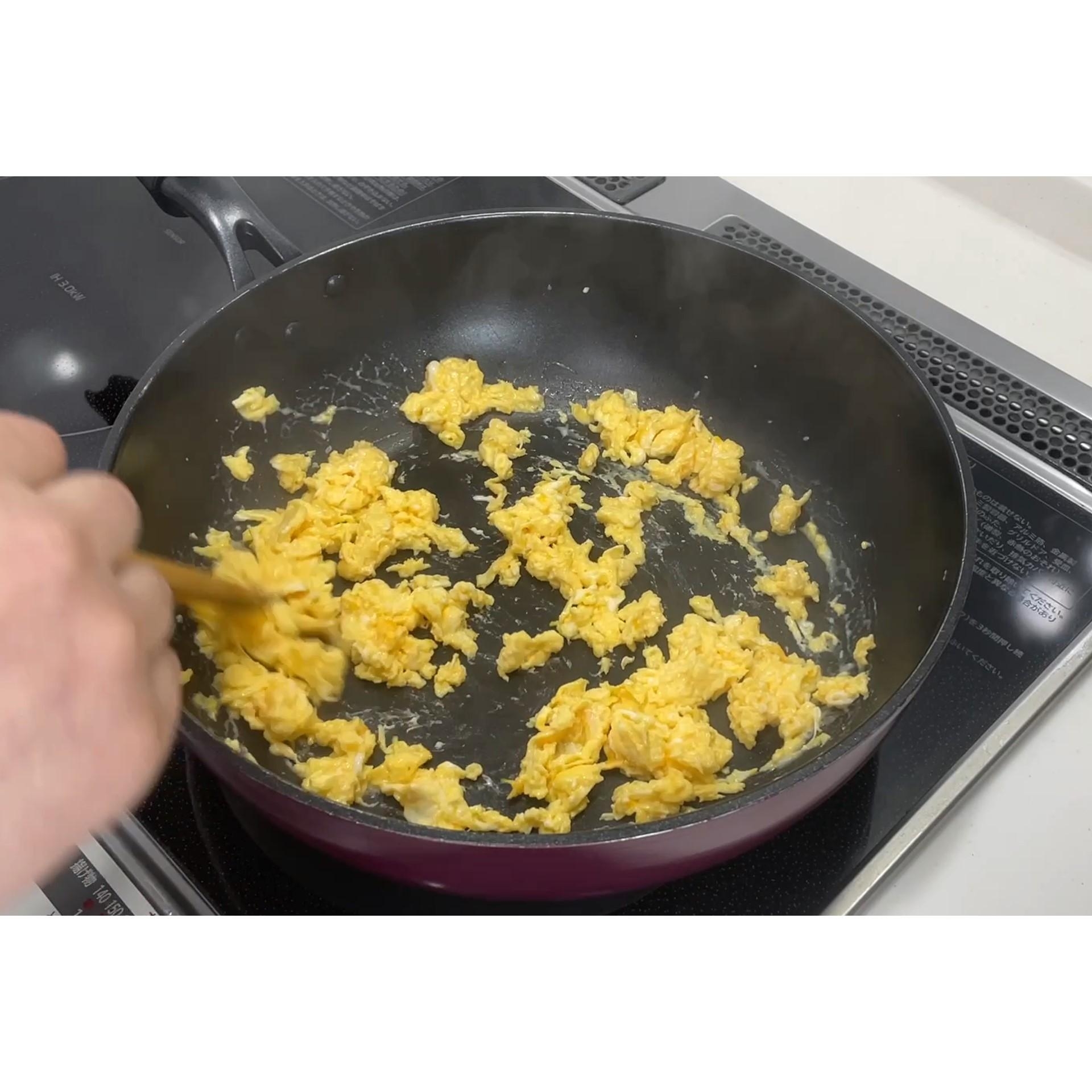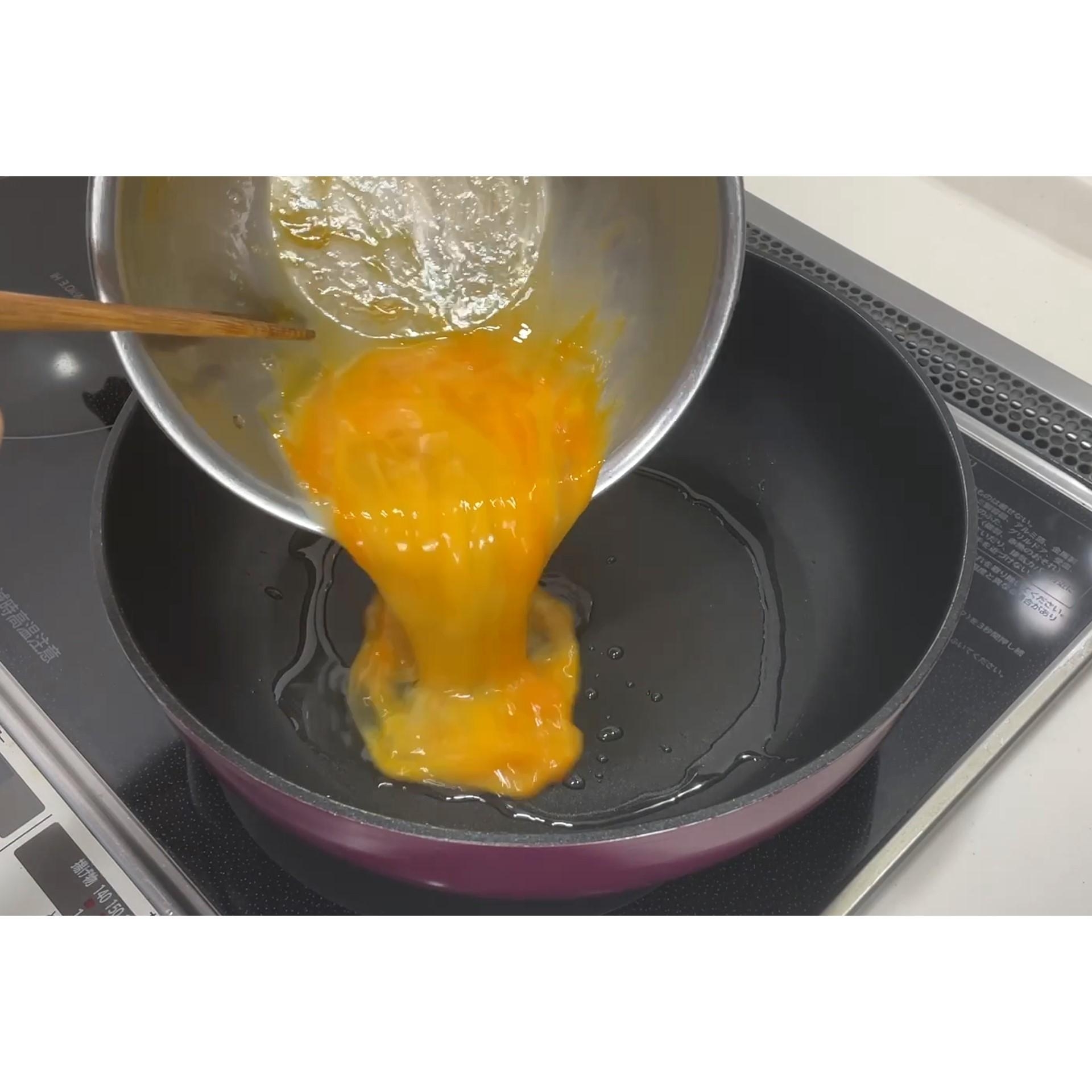フライパンに玉子を入れます。