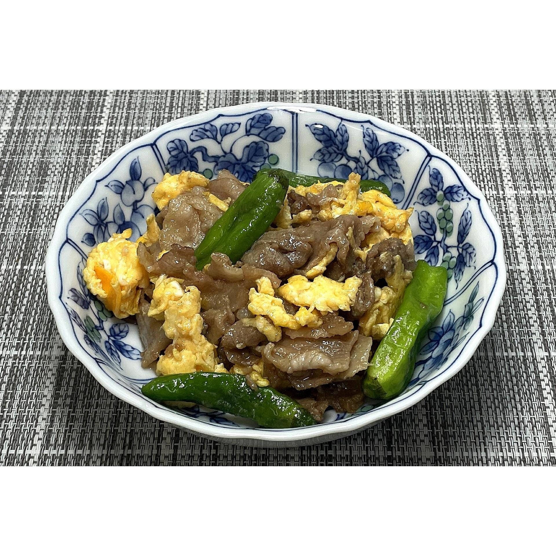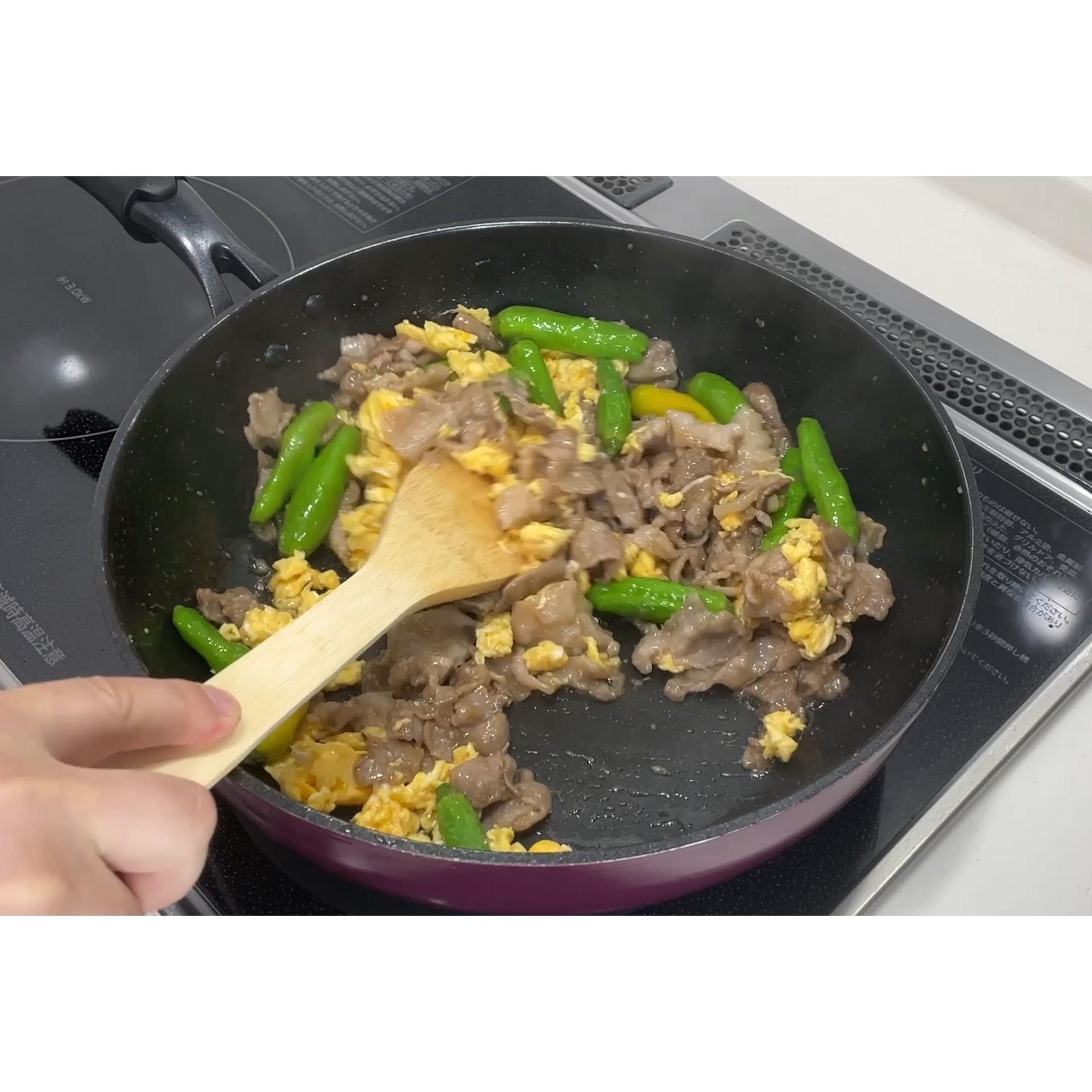 豚肉・ししとう・玉子を軽く混ぜます。