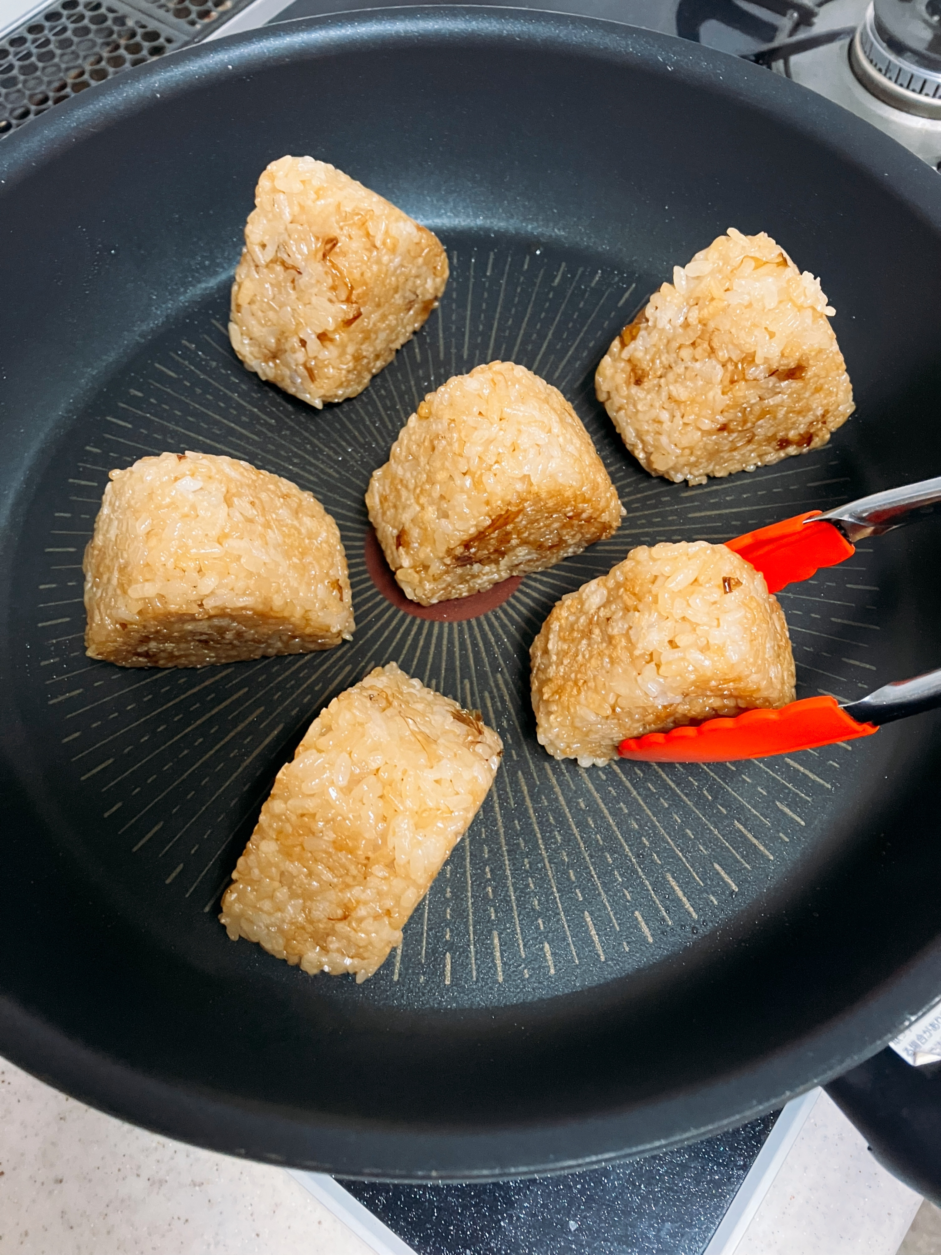 おにぎりは崩れやすいので、焼き目が付くまでは、 なるべく触らないようにしてくださいね♪