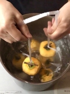 浸ける時間は小型の柿で5秒、中型8秒、大型10秒ほど。