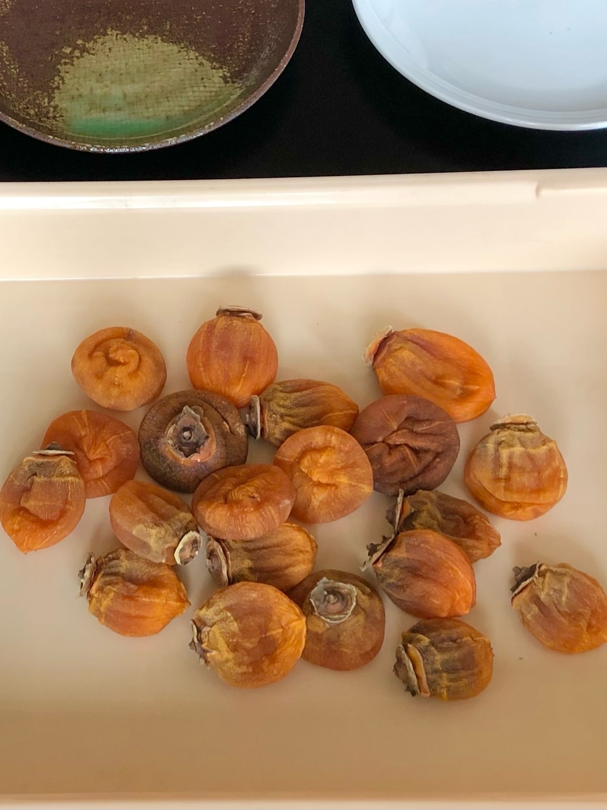 夫の実家に柿の木が数種類あり毎年数百個いただいています。 ここ福井県は年間日照時間が国内45位の干し柿不作地帯?です。母はよく干し柿をカビさせていました。 私は二十年以上で数千個作りましたが今まで一個もカビませんでした。