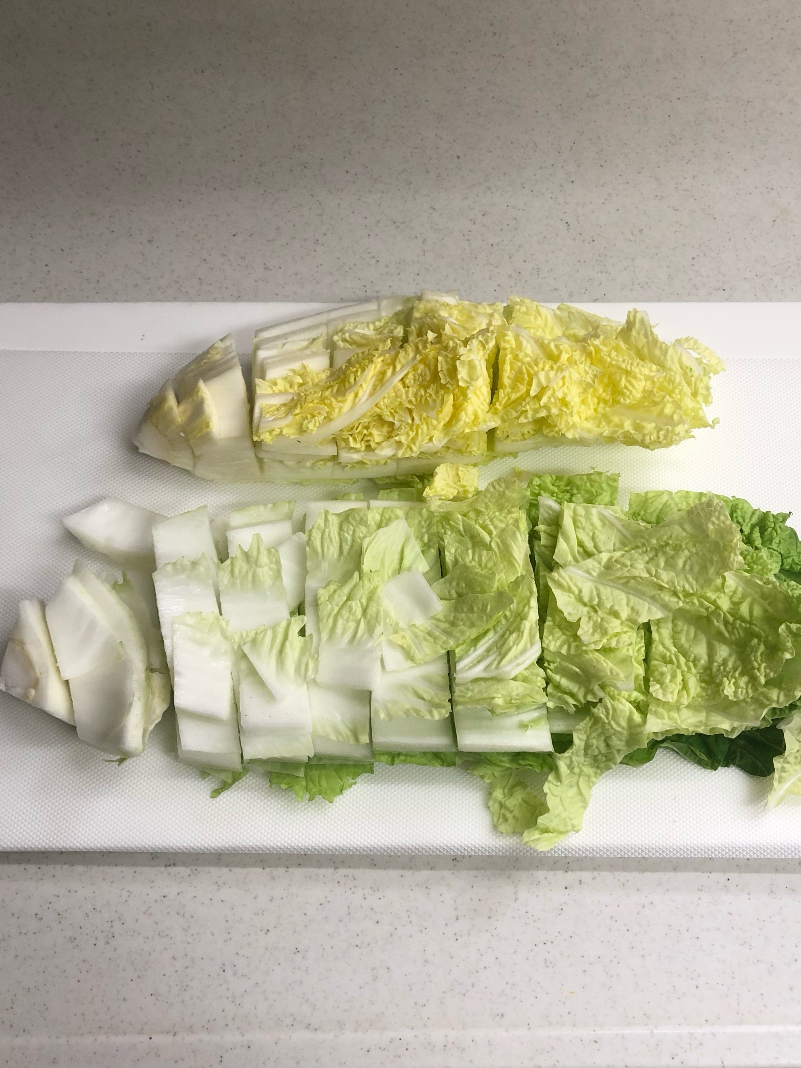 白菜は外側と内側に2つに分け、1〜2cm幅に切る。