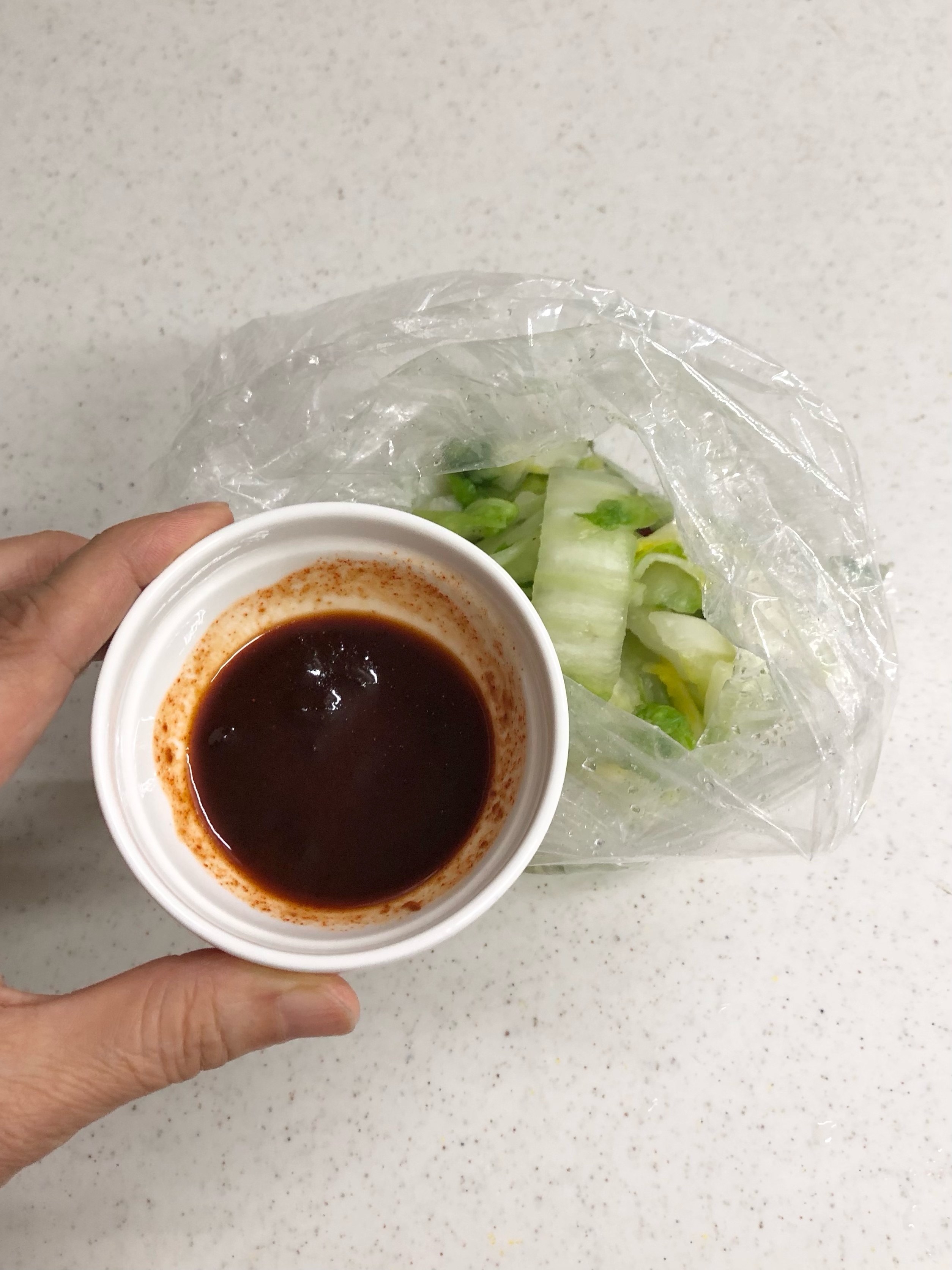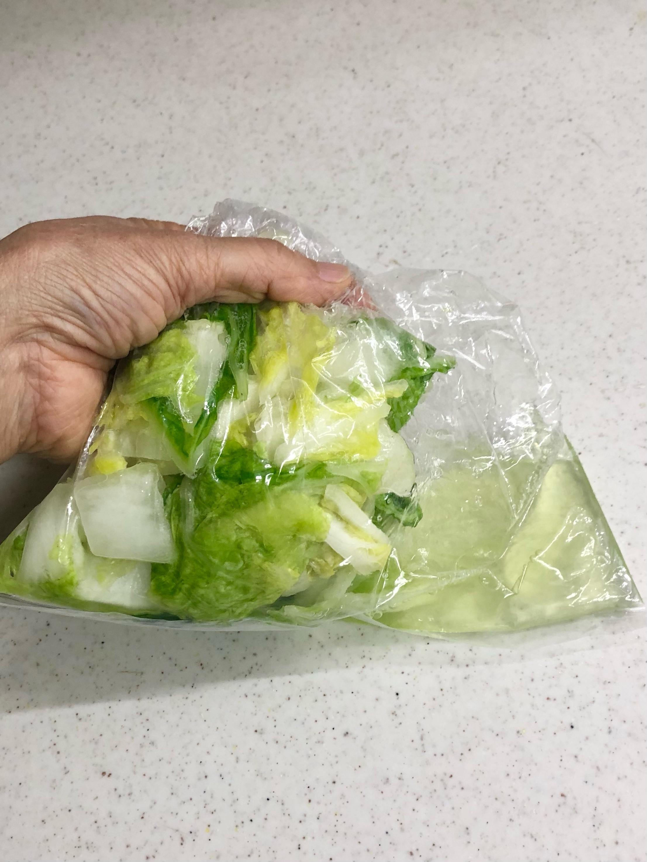 丈夫なビニール袋に白菜を入れて塩を加え振り混ぜる。