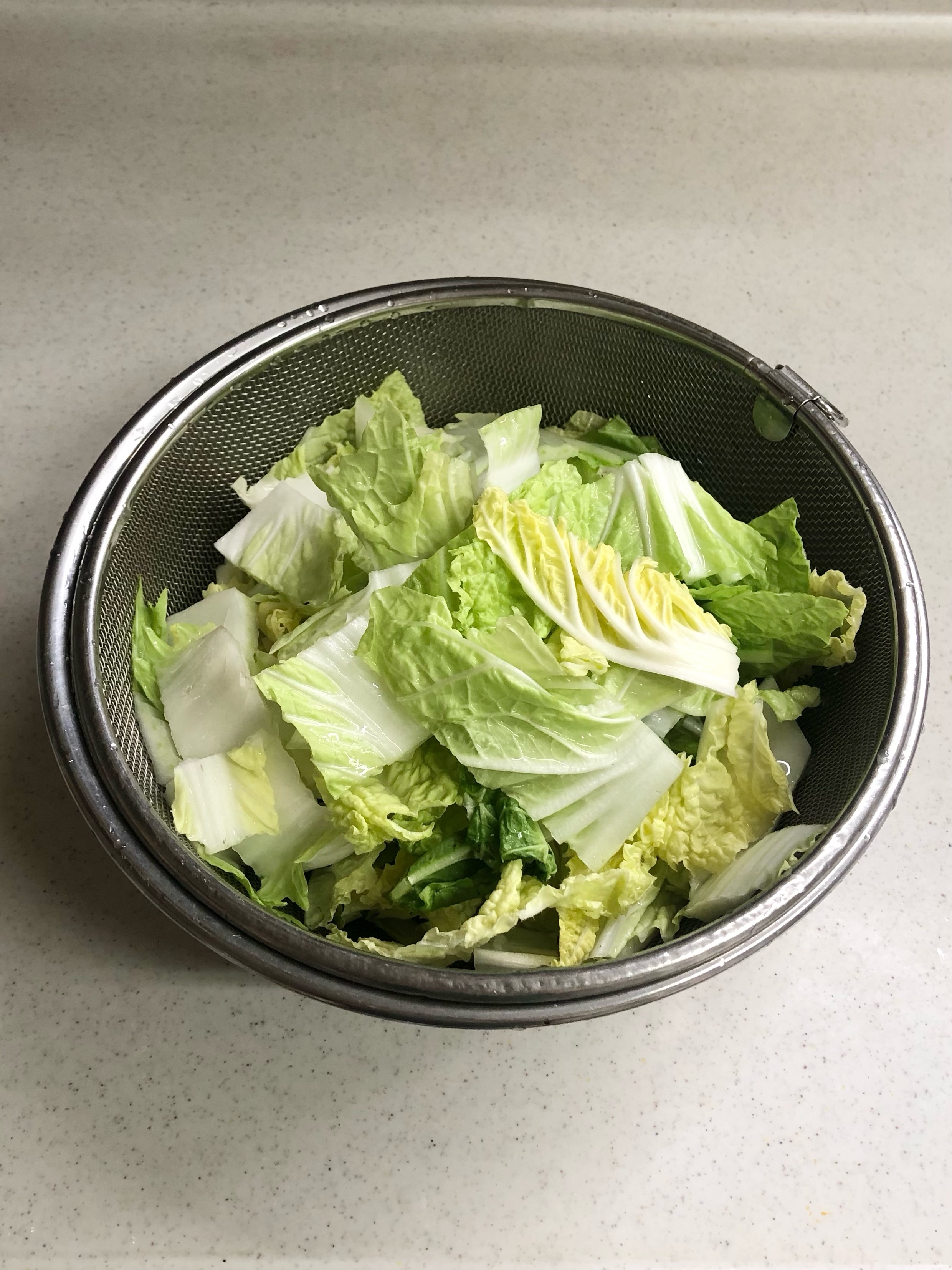 白菜は外側と内側の2つに分け、1〜2cm幅に切る。