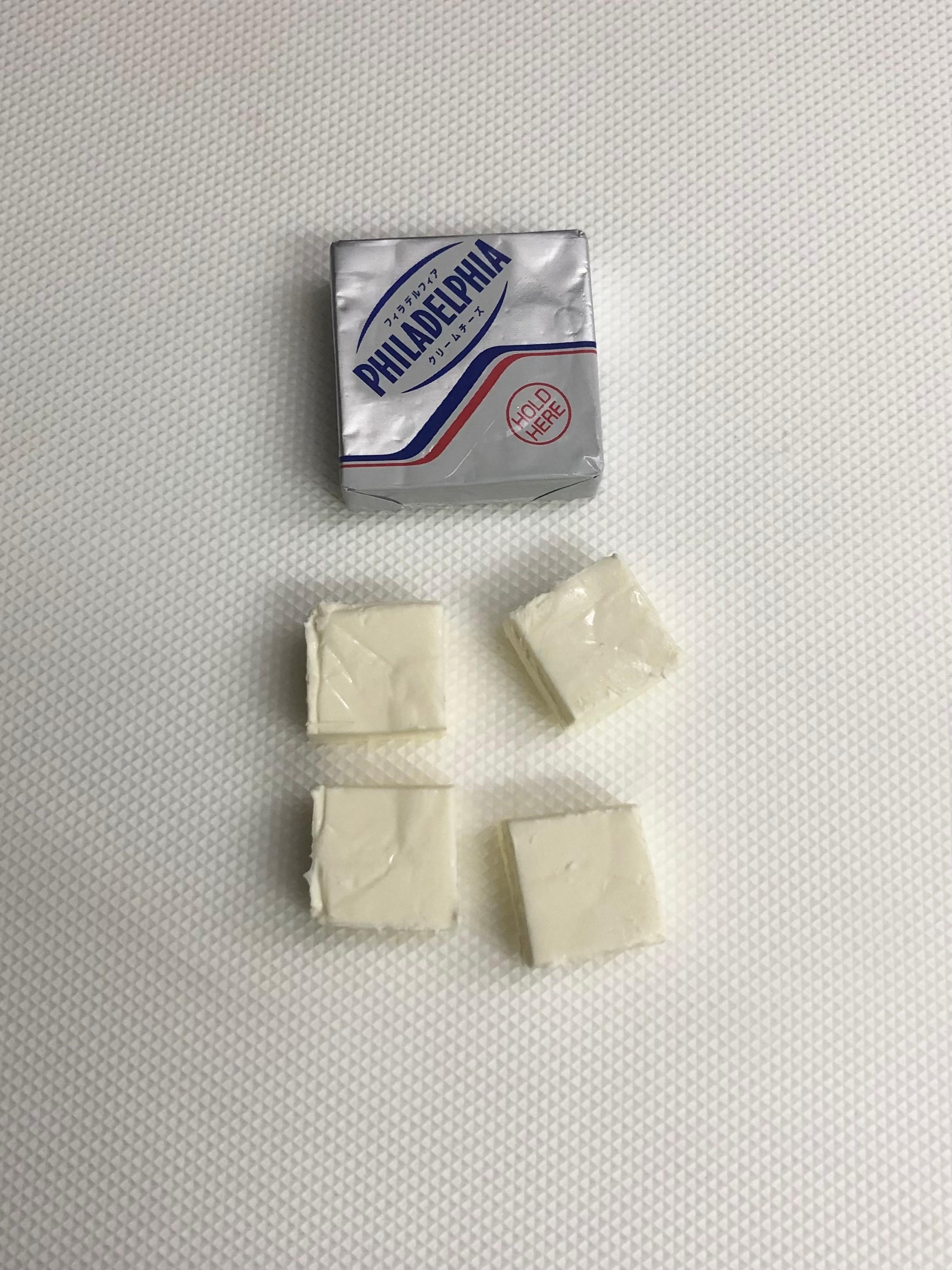 クリームチーズを半分か4つ割りに切る。