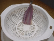 イワシをザルなどに置き、風通しの良い日陰で半日~1日干します。その際、防虫ネットを被せます。