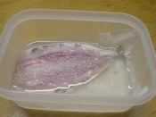 イワシの上側が乾かないように、キッチンペーパーを被せて塩水で湿らせておきます。