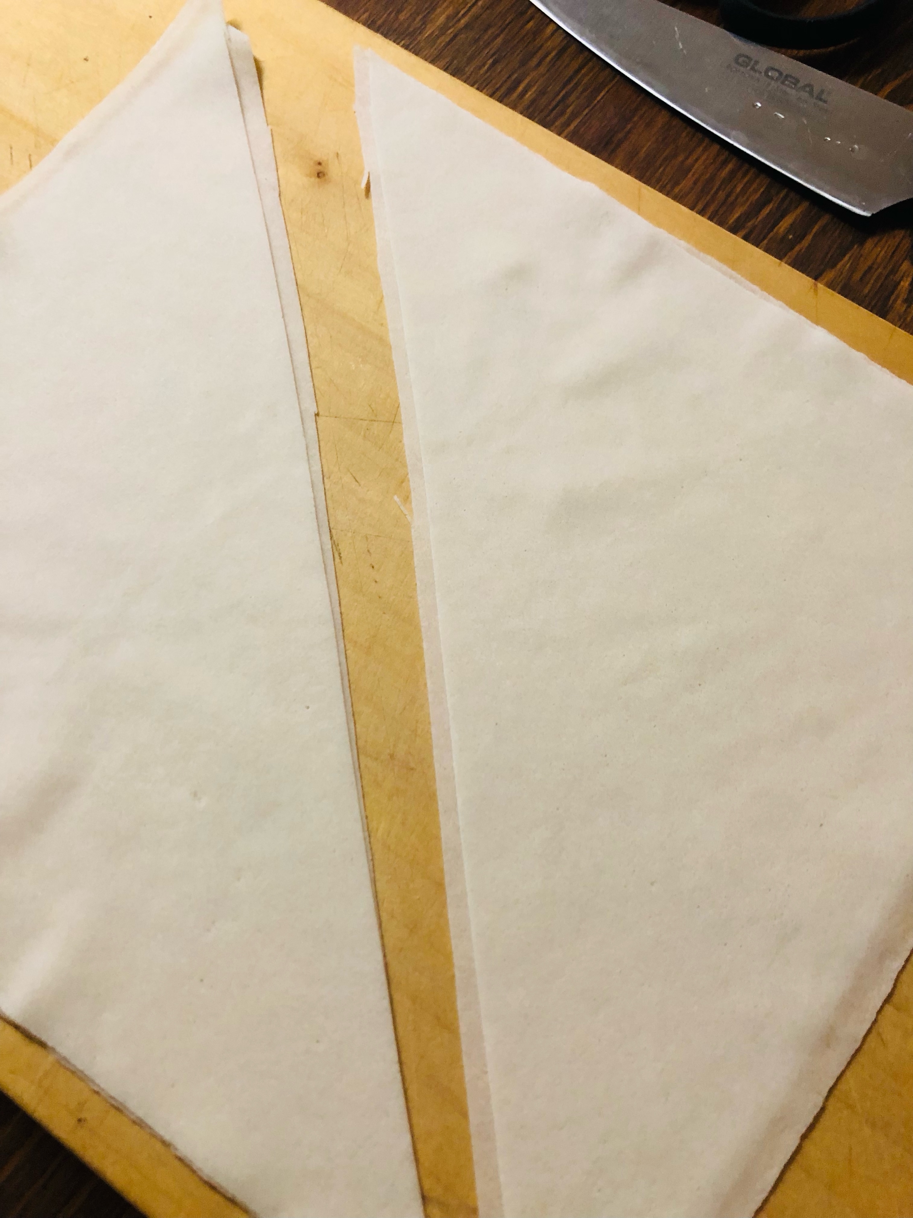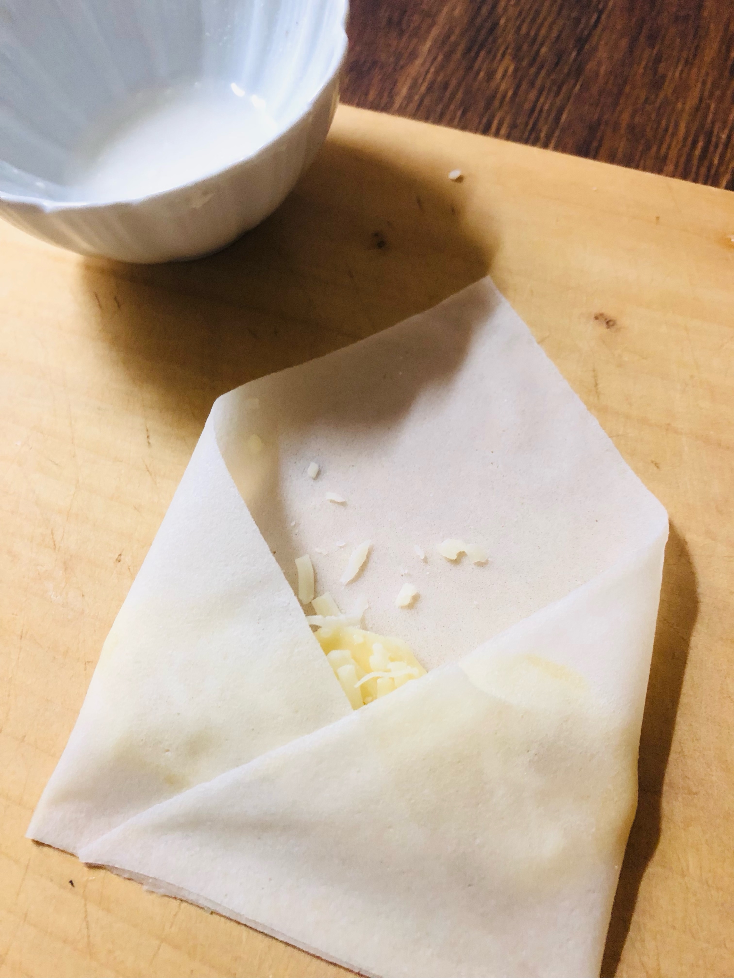 春巻きの皮を斜め半分に切る。