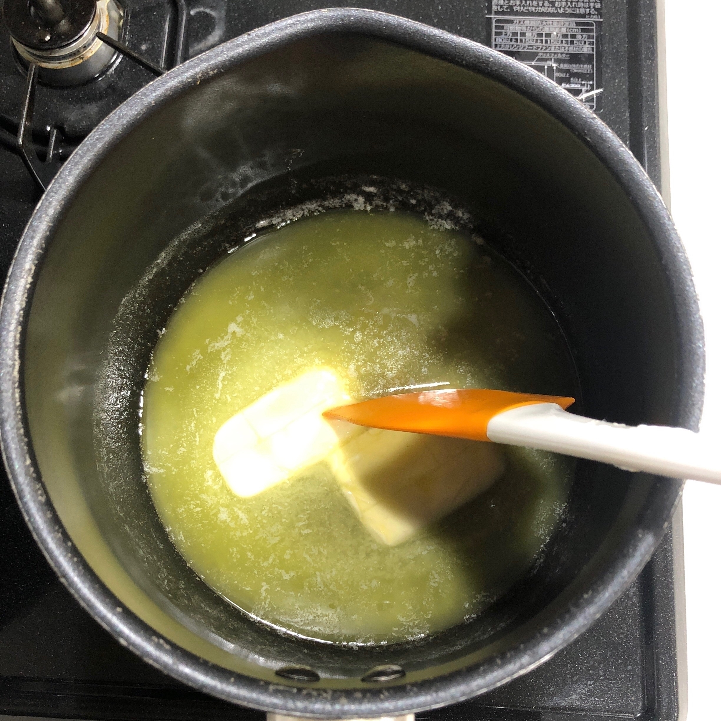 鍋にバターを入れて火にかけ、弱火で溶かす。